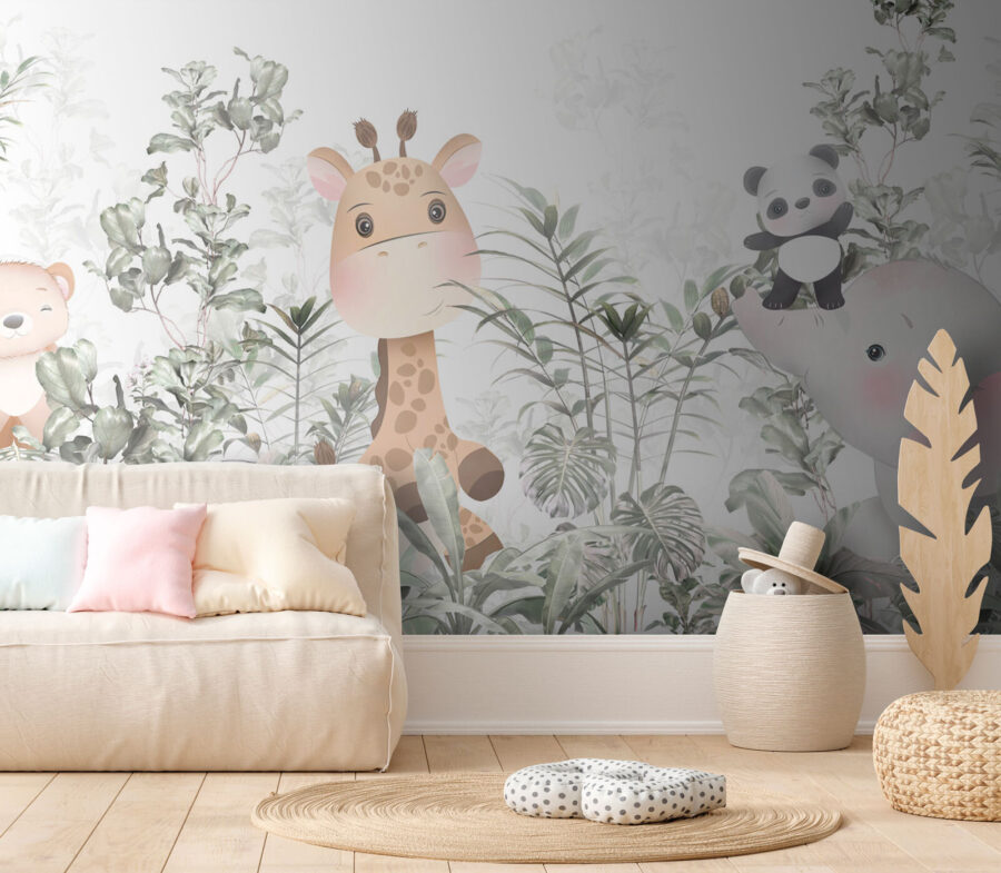 Transformez l’espace d’un enfant en une aventure fantaisiste dans la jungle grâce à cette ravissante peinture murale représentant une charmante girafe, un panda enjoué et un adorable petit ours. Imaginez que vous entrez dans la pièce et que vous ressentez instantanément la chaleur d’un monde naturel et vivant, où la créativité s’épanouit et où les rêves s’envolent. Les couleurs douces et les animaux enchanteurs stimulent l’imagination, faisant de l’heure du conte une expérience encore plus magique. Parfait pour susciter des rires et des sentiments chaleureux, c’est comme si vous aviez une petite tranche de vie sauvage directement sur les murs. Qui ne voudrait pas se réveiller entouré de cette équipe colorée ? La jungle n’est pas seulement pour les animaux, elle est aussi pour les petits !