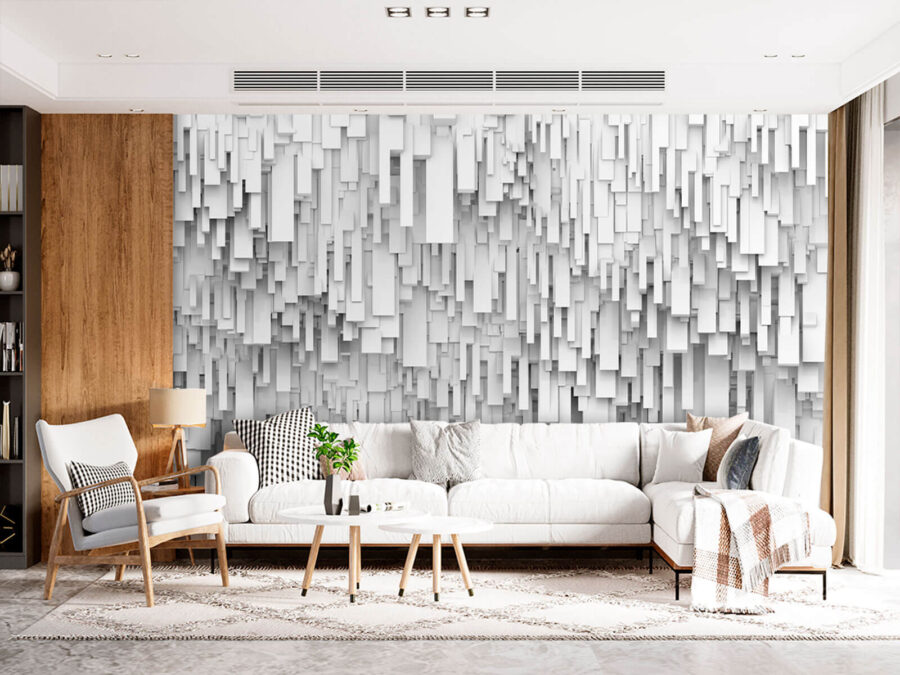Transformez votre espace avec cette fresque murale accrocheuse composée d’un magnifique ensemble de formes rectangulaires blanches. C’est comme une petite œuvre d’art moderne qui s’étale sur votre mur ! Imaginez-vous entrer dans une pièce où les murs murmurent des histoires d’élégance contemporaine. Le jeu de lumière et d’ombres crée une atmosphère apaisante, parfaite pour des soirées douillettes ou des réunions animées. C’est un enchevêtrement de charmes géométriques si accueillant qu’il donne envie de prendre une tasse de café et de discuter tranquillement. Parfait pour ceux qui apprécient l’originalité et veulent que leur décoration ait un peu de personnalité !