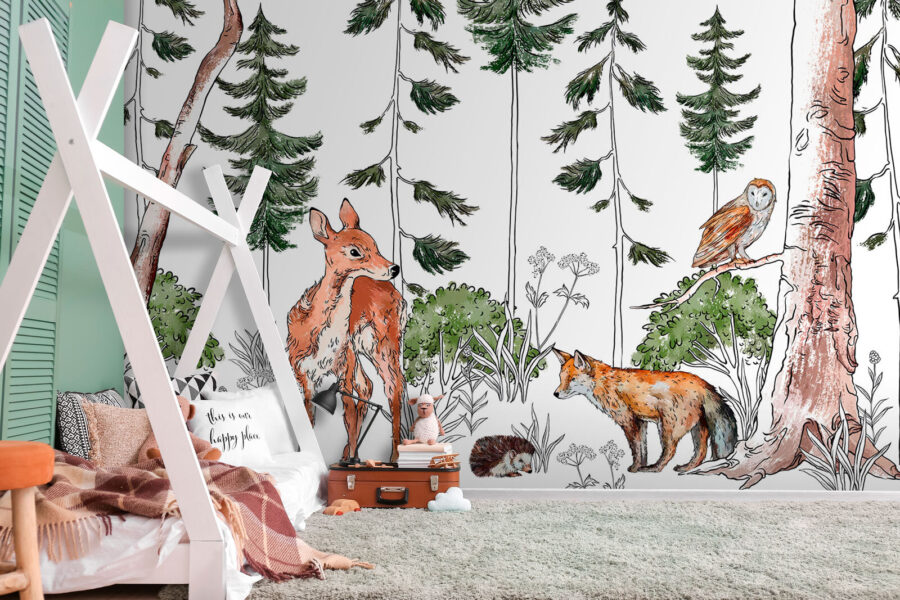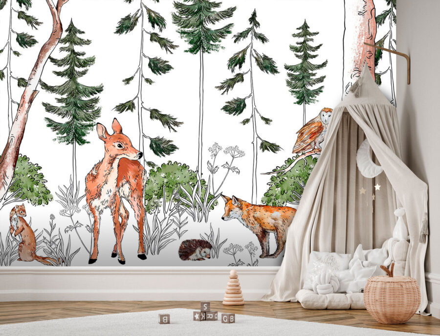 Transformez n’importe quel espace avec cette charmante fresque murale mettant en scène une délicieuse galerie d’animaux de la forêt ! Imaginez une scène sereine dans les bois, où un cerf curieux et un renard espiègle se promènent parmi une végétation luxuriante. Un hibou observe depuis les hauteurs, ajoutant une touche de fantaisie. C’est comme avoir un morceau de nature directement sur votre mur. Parfaite pour un coin lecture confortable ou une chambre d’enfant, cette fresque invite la nature à l’intérieur, transformant chaque regard en une petite aventure. Répandez la joie et la chaleur, et laissez les histoires se dérouler dans votre propre forêt enchantée. Vous ne vous ennuierez jamais avec ces amis à fourrure !