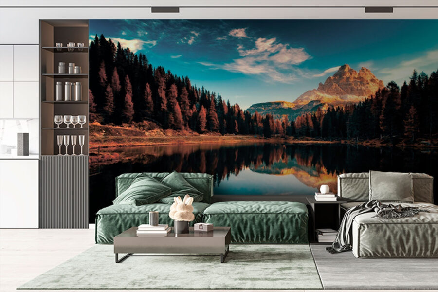 Imaginez que vous entrez dans un espace confortable et que, tout à coup, cette superbe fresque murale représentant un lac paisible entouré d’arbres majestueux et de montagnes attire votre regard. C’est comme une mini-vacance sur votre mur ! Les couleurs sont si riches qu’elles vous invitent pratiquement à tremper vos orteils dans l’eau. Imaginez que vous recevez des amis et que vous ressentez un sentiment de calme envahir tout le monde tandis qu’ils discutent et sirotent leurs boissons, tout en contemplant ce chef-d’œuvre. Ce n’est pas seulement une décoration murale, c’est un élément qui crée une ambiance, une pièce maîtresse qui transforme n’importe quelle pièce en un refuge naturel. N’entendez-vous pas le doux clapotis de l’eau et le murmure des arbres ? Cette fresque murale apporte un peu de nature à l’intérieur, parfaite pour rêver ou planifier votre prochaine aventure. Qui ne voudrait pas cela ?