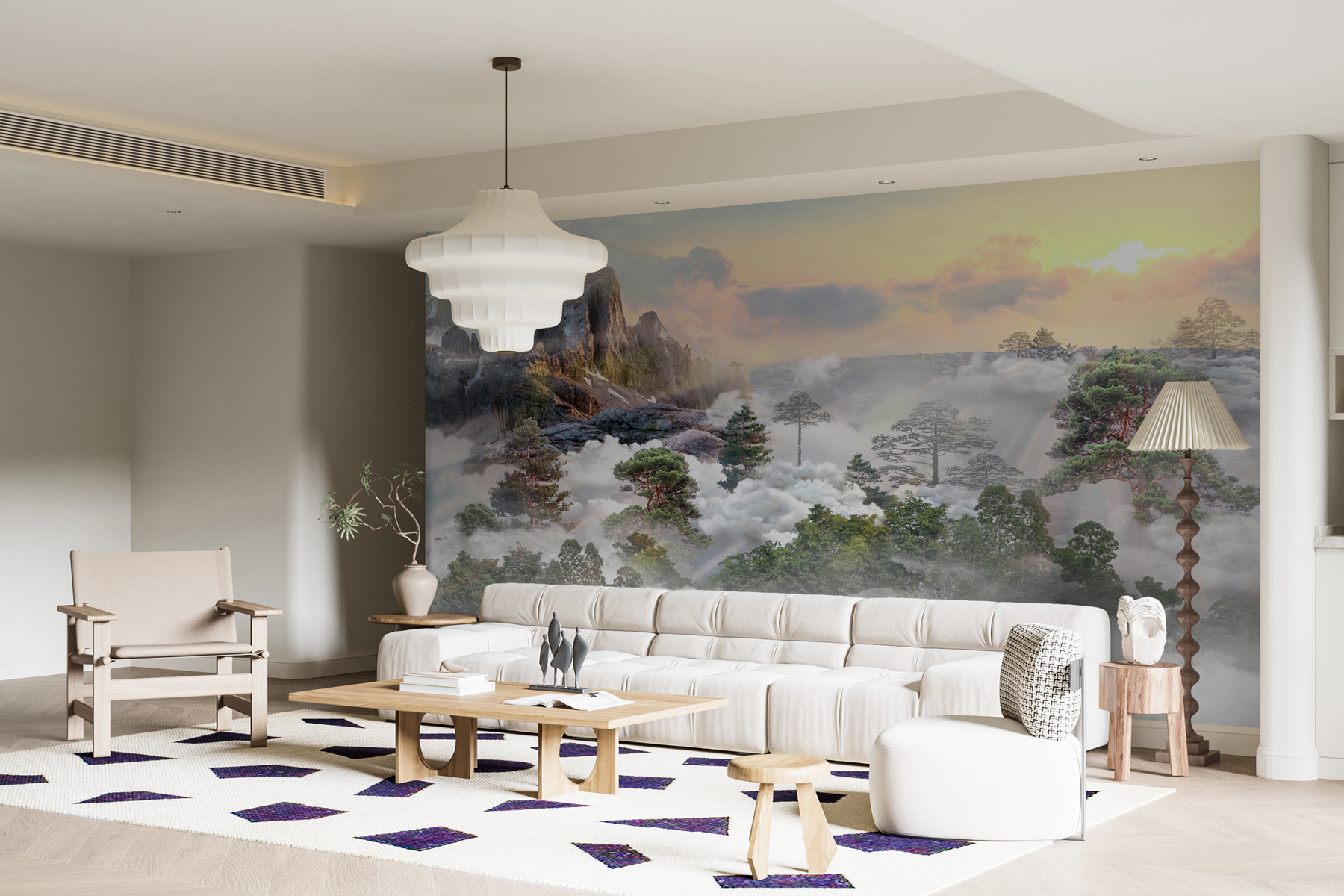 Imaginez-vous en train de siroter un café sous ces nuages cotonneux, laissant votre esprit vagabonder vers des contrées lointaines. Les couleurs apaisantes créent une atmosphère paisible, parfaite pour rêvasser ou se lover dans un bon livre. Ce n’est pas seulement un mur, c’est toute une ambiance. Cette peinture murale invite la chaleur et la beauté de la nature à l’intérieur, suscitant la joie chaque fois que vous y jetez un coup d’œil.