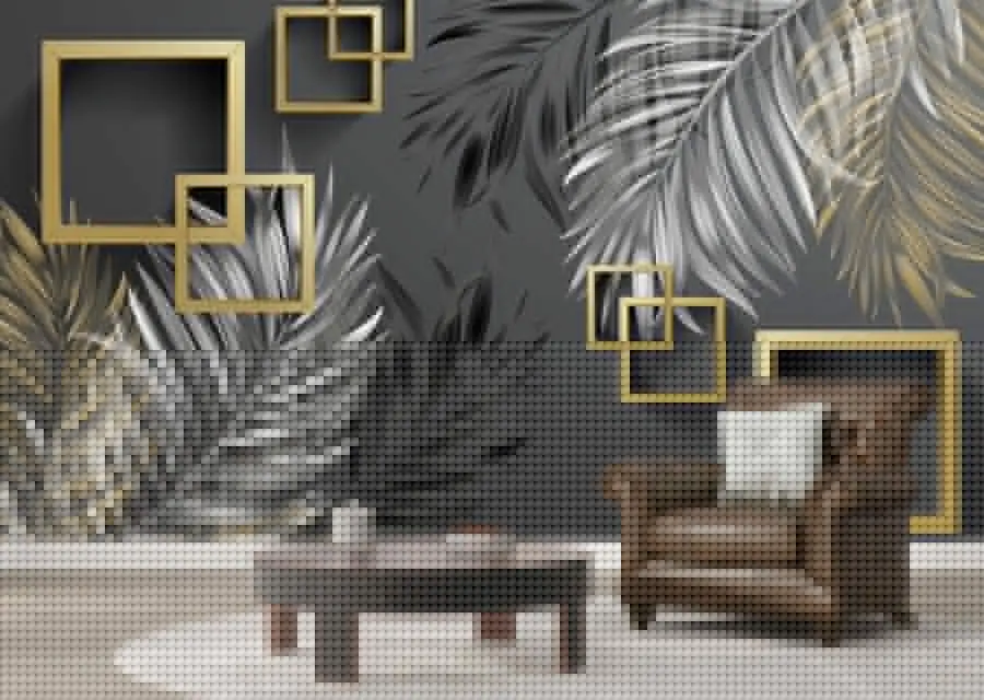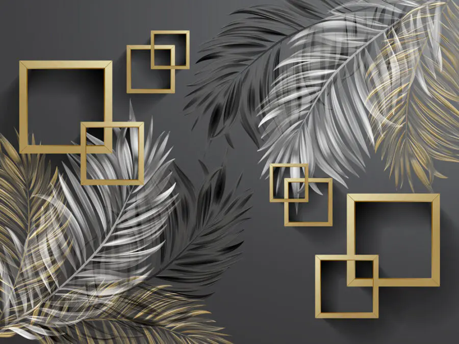 Transformez votre espace avec cette superbe peinture murale qui allie harmonieusement d’élégants cadres à une touche tropicale. Imaginez : vous vous prélassez dans votre salon, entouré de plumes luxuriantes, tandis qu’un ensemble époustouflant de cadres géométriques attire l’attention. C’est comme une galerie d’art de classe dans votre maison, sans l’ambiance snob.