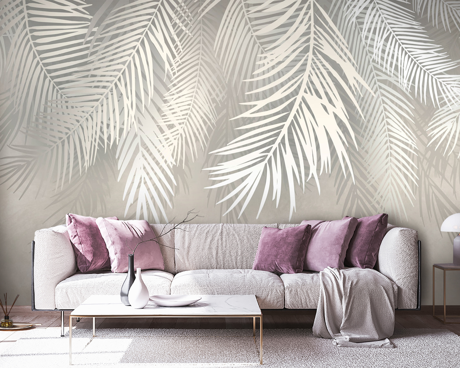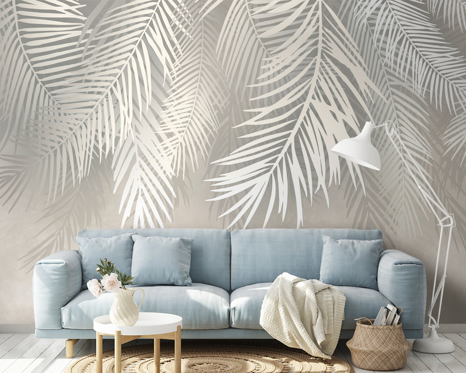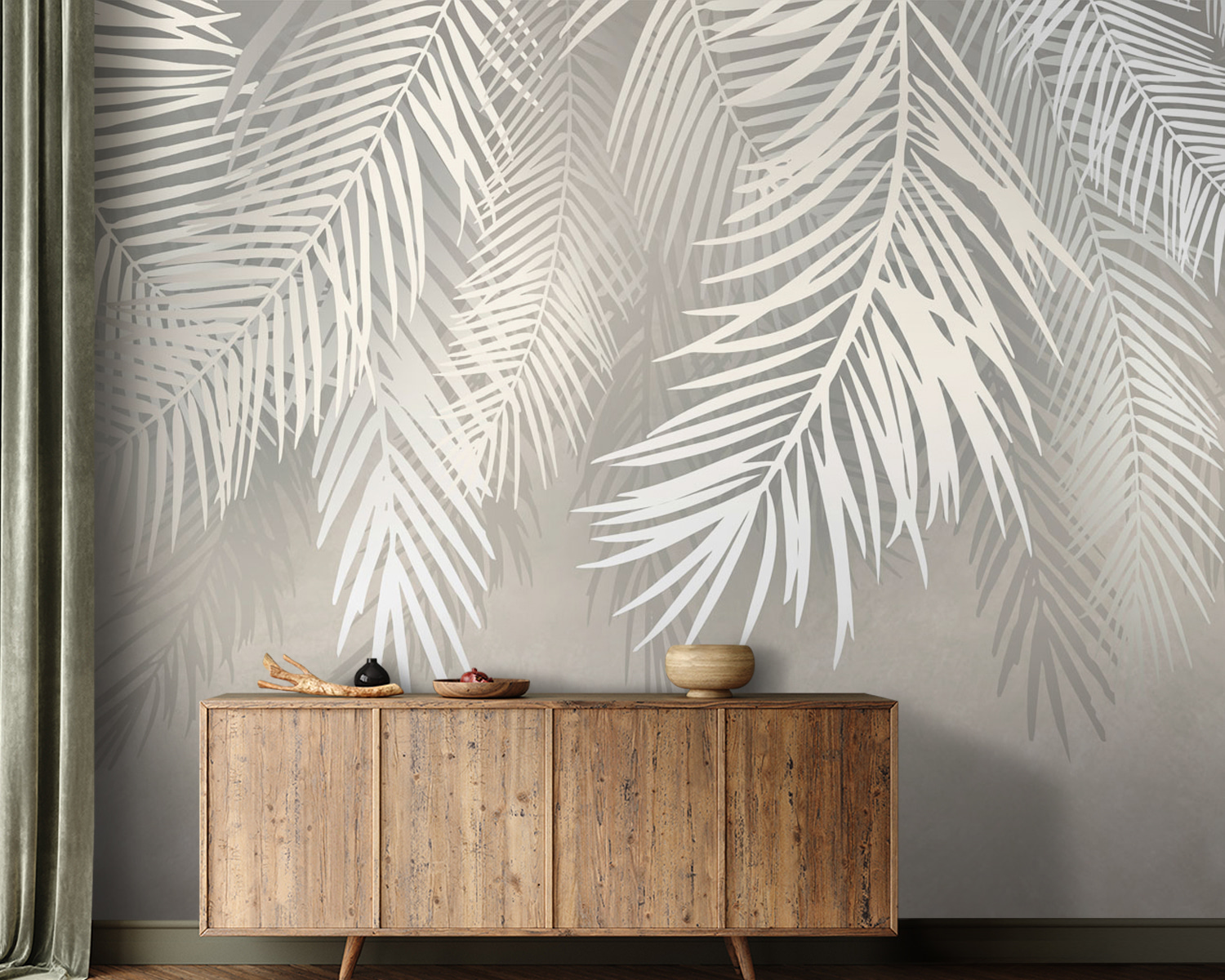 Transform any room into a serene retreat with this stunning wall mural featuring white leaves on a soft gray background. Imagine waking up to the gentle whisper of tropical vibes every day. It’s like having a mini jungle right on your wall, but without the need for a watering can—so no green thumb required! The subtle contrasts create a calming atmosphere, perfect for unwinding after a long day. Whether it’s a cozy nook or a spacious living room, this mural invites nature inside, sparking conversations and inspiring lazy afternoons spent daydreaming. It’s décor with a dash of magic and a sprinkle of elegance, turning ordinary into extraordinary. Who knew leaves could be so chic?