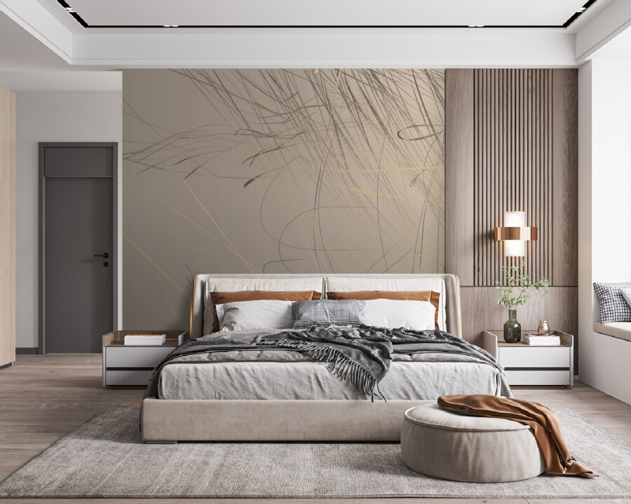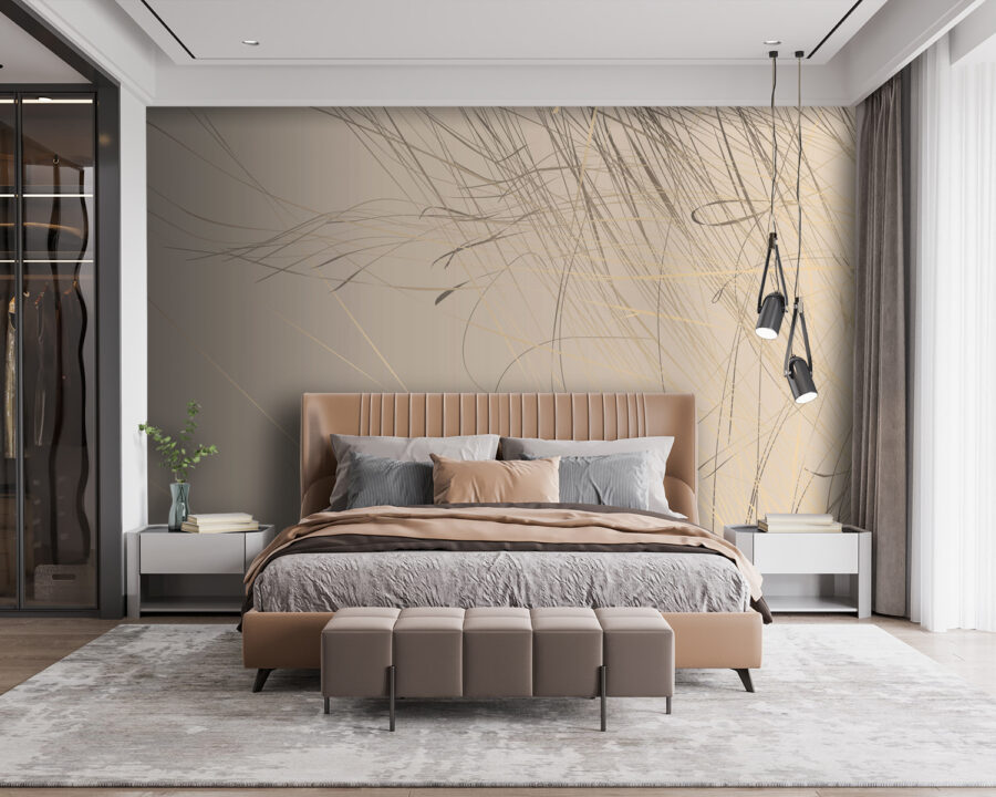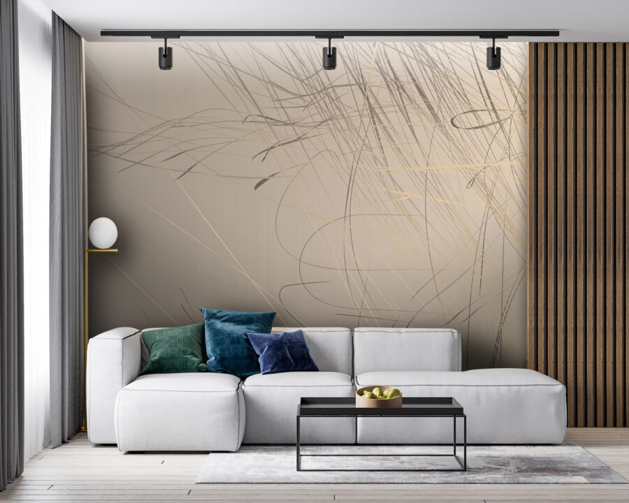 Imaginez que vous entrez dans une pièce et que vous voyez ceci sur le mur – “Wow”, n’est-ce pas ? Cette peinture murale, avec ses lignes abstraites dansant sur un doux fond beige, est pratiquement un gage d’élégance. C’est le genre d’œuvre qui ne crie pas, mais qui se fait remarquer. Elle est parfaite pour tous ceux qui trouvent que les murs simples sont trop, eh bien, simples. Vous l’aimeriez dans un salon ou même dans un studio chic. C’est comme ajouter une touche de créativité sans lever le pinceau. Imaginez une fin d’après-midi, la lumière du soleil s’infiltrant à l’intérieur, accrochant ces lignes juste comme il faut – le zen instantané.