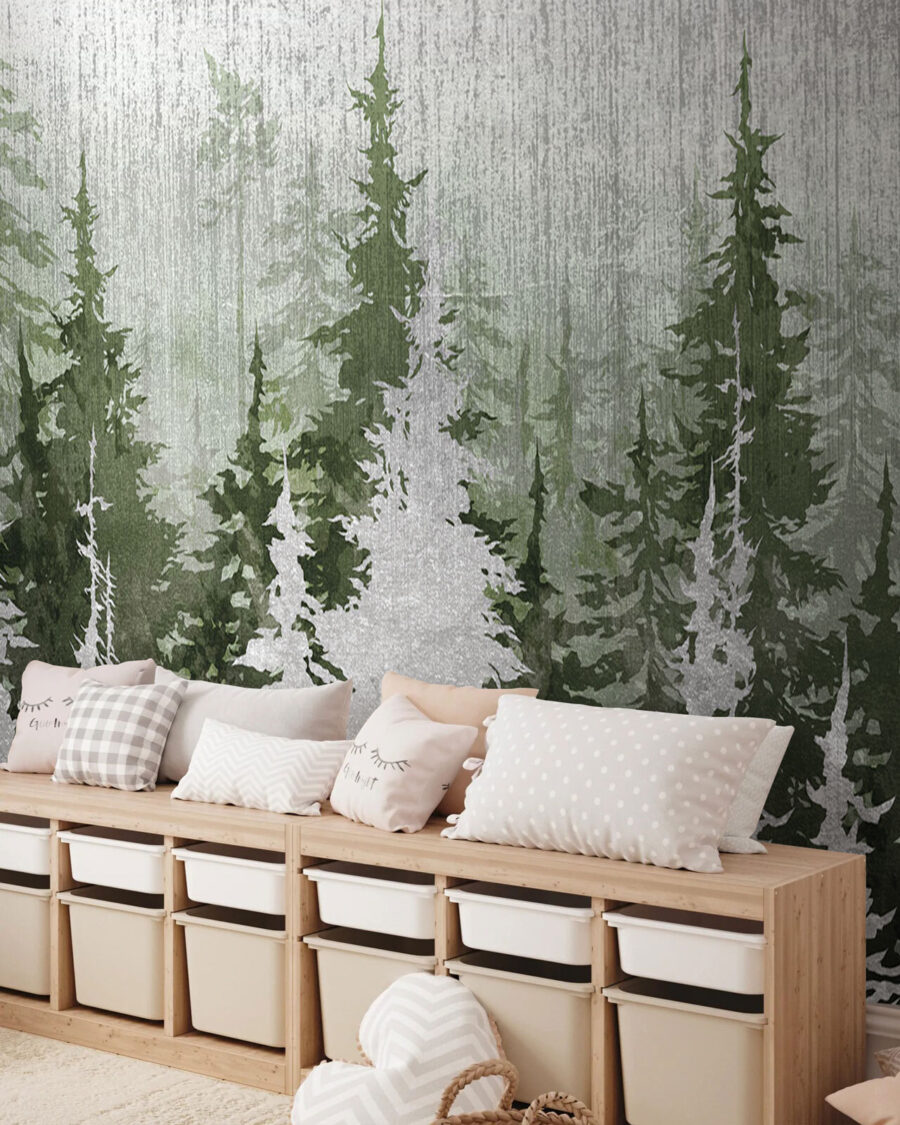Transformez votre espace avec cette peinture murale enchanteresse d’une forêt, où les arbres semblent chuchoter des secrets à la brise. C’est comme si vous pénétriez dans une forêt sereine sans quitter votre salon. Imaginez des soirées douillettes passées à siroter un thé en contemplant les verts tranquilles et les gris doux. Les couches d’arbres créent de la profondeur, comme une échappée rêveuse de la vie quotidienne. Cette peinture murale est parfaite pour tous ceux qui souhaitent inviter la beauté de la nature dans leur maison. Cette peinture murale ne se contente pas de décorer un mur, elle insuffle de la vie dans n’importe quelle pièce. Vous vous demanderez peut-être même si un écureuil passera par là !