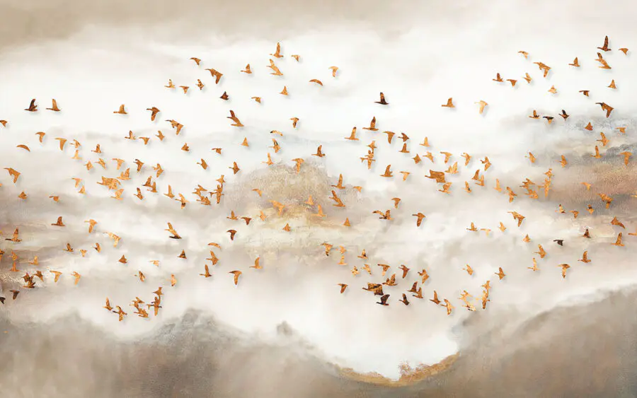 Transformez n’importe quelle pièce en une évasion sereine grâce à cette superbe peinture murale représentant un groupe d’oiseaux volant dans un ciel de rêve. Les couleurs douces et les oiseaux gracieux créent une atmosphère calme et stimulante, comme une brise fraîche un jour de printemps. Imaginez-vous en train de siroter votre café du matin ou de vous détendre après une longue journée en contemplant cette scène captivante. Elle vous attire, suscite des rêveries et des histoires. De plus, elle ajoute une touche chic à n’importe quel espace, qu’il s’agisse d’un salon confortable ou d’une chambre à coucher paisible. Qui ne voudrait pas avoir l’impression de s’élever dans les nuages ?