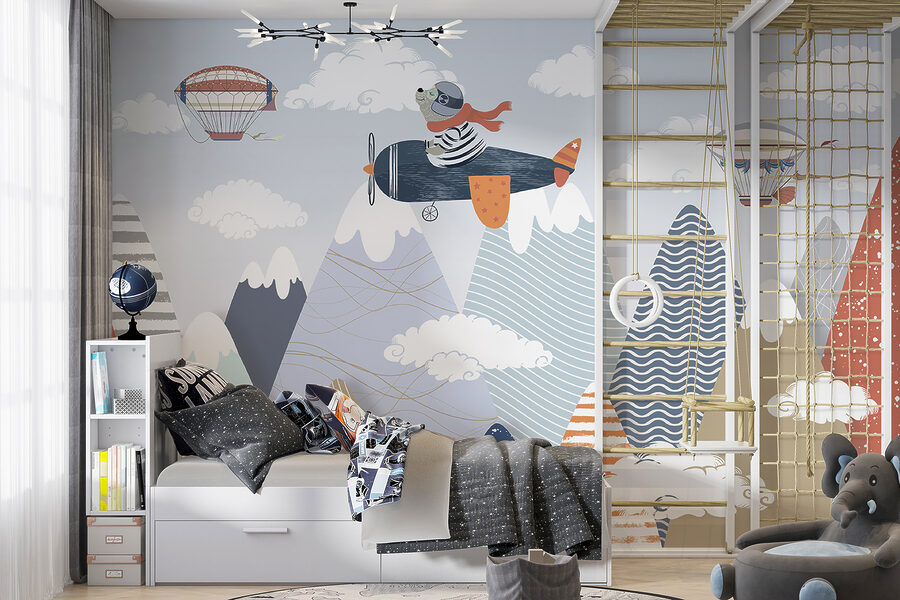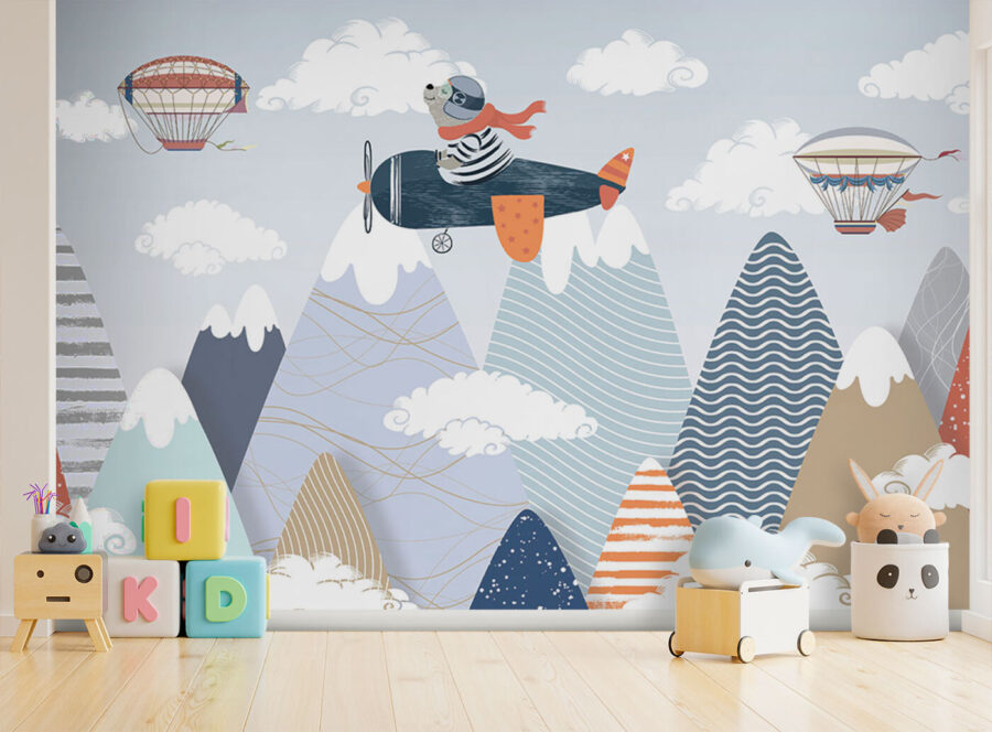 Imaginez que vous entrez dans la chambre de votre enfant et que vous êtes accueilli par une scène fantaisiste qui semble tout droit sortie d’un récit d’aventure ! Cette peinture murale, qui représente de joyeuses montgolfières glissant à travers des nuages cotonneux au-dessus de montagnes abstraites et colorées, donnera un aspect magique à n’importe quel espace. Elle est parfaite pour stimuler l’imagination de votre enfant – il aura peut-être l’impression de piloter sa propre expédition dans le ciel. Les couleurs chaudes et douillettes et les motifs ludiques apportent un charme certain. Parfaite pour les chambres d’enfants ou les salles de jeux, cette peinture murale n’est pas seulement un décor, c’est un portail vers des aventures sans fin ! Rêvez grand, naviguez haut !