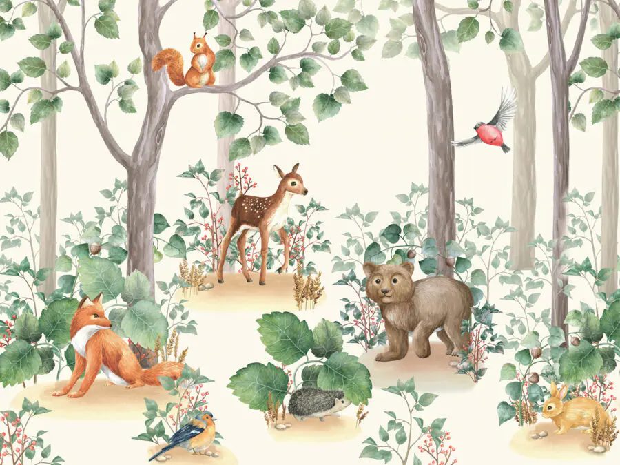 Imaginez le visage de votre enfant s’illuminer à chaque fois qu’il entre dans sa chambre avec ce “Muraux animaux de la forêt parmi les arbres”. Peint dans un style aquarelle doux, ce mural apporte le charme paisible d’une scène de forêt directement sur vos murs. Vous verrez des écureuils grimper aux arbres, un cerf timide jeter un coup d’œil et même un ours curieux ! C’est comme si vous entriez dans leur livre d’histoires préféré.