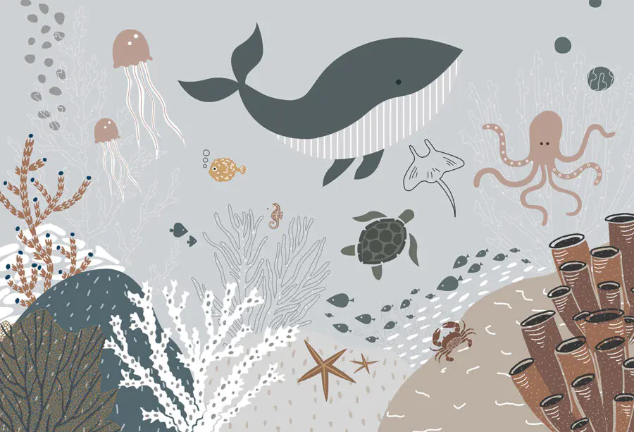 Imaginez transformer la chambre de votre enfant en un monde sous-marin enchanteur grâce à cette peinture murale ludique “Dessin animé d’une baleine”. Parfaite pour une chambre d’enfant, cette peinture murale représente des créatures marines sympathiques telles que des baleines, des tortues et des méduses dans de douces teintes d’aquarelle. C’est comme si vous faisiez entrer une partie de l’océan dans votre maison sans vous mouiller !