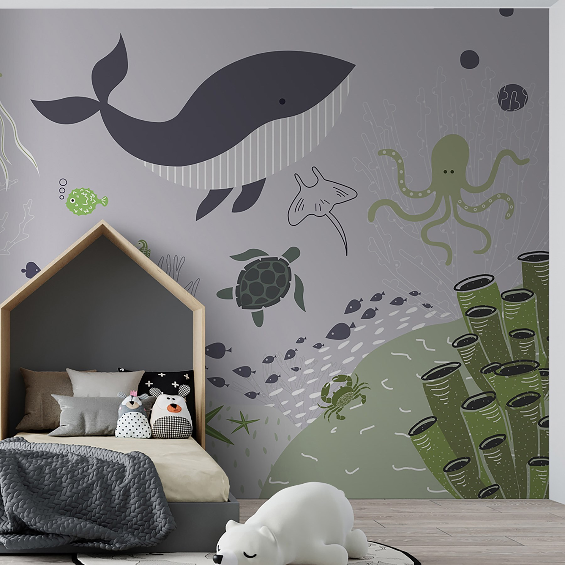 Prêt à transformer vos murs en une aventure sous-marine ? Jetez un coup d’œil à cette charmante peinture murale “Dessin animé d’une baleine” ! Imaginez une baleine enjouée, rejointe par ses charmants amis de l’océan – méduses, tortues et même une pieuvre effrontée – le tout dans un style aquarelle confortable et fantaisiste. C’est comme si vous plongiez dans une mer magique depuis votre salon ou la chambre de votre enfant.
