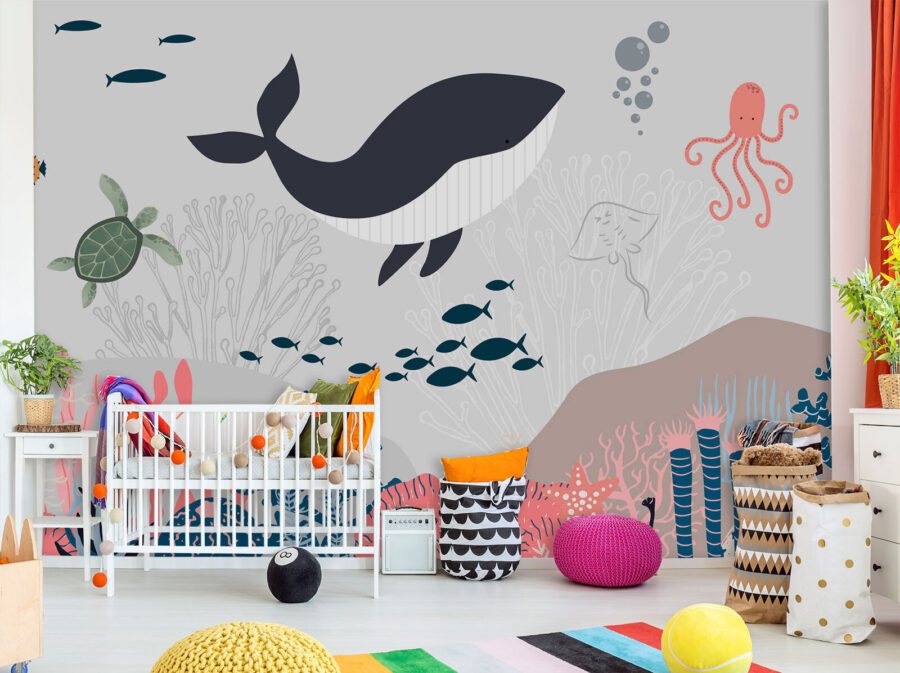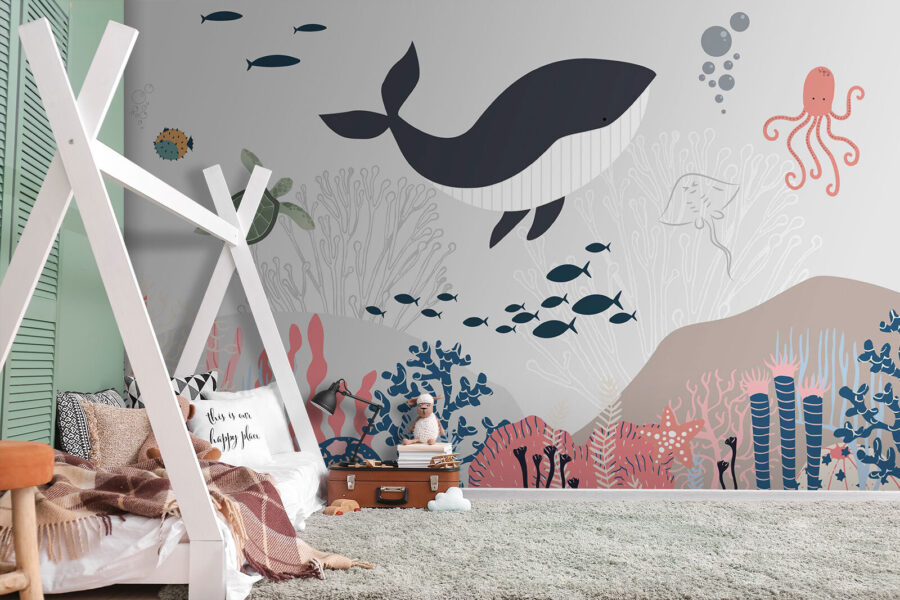 Vous souhaitez ajouter une touche de fun à la chambre de votre enfant ? Jetez un coup d’œil à la “peinture murale Baleine et tortue sous l’eau”. Cette peinture murale n’est pas seulement pour les murs – c’est une aventure sous la mer, dans votre propre maison. Imaginez une baleine joyeuse et une tortue curieuse, nageant ensemble dans un monde sous-marin coloré. C’est l’idéal pour stimuler l’imagination des petits et créer des histoires d’aventures océaniques à l’heure du coucher. De plus, il n’est ni trop chargé ni trop lumineux – juste une palette douce qui apaise et divertit. Imaginez les yeux de votre enfant s’illuminer lorsqu’il aperçoit la pieuvre ou le banc de poissons ! C’est comme avoir un aquarium sans l’entretien. Une touche délicieuse et fantaisiste pour toute chambre ou salle de jeux. Plongez dans cette peinture murale et laissez la magie sous-marine opérer !