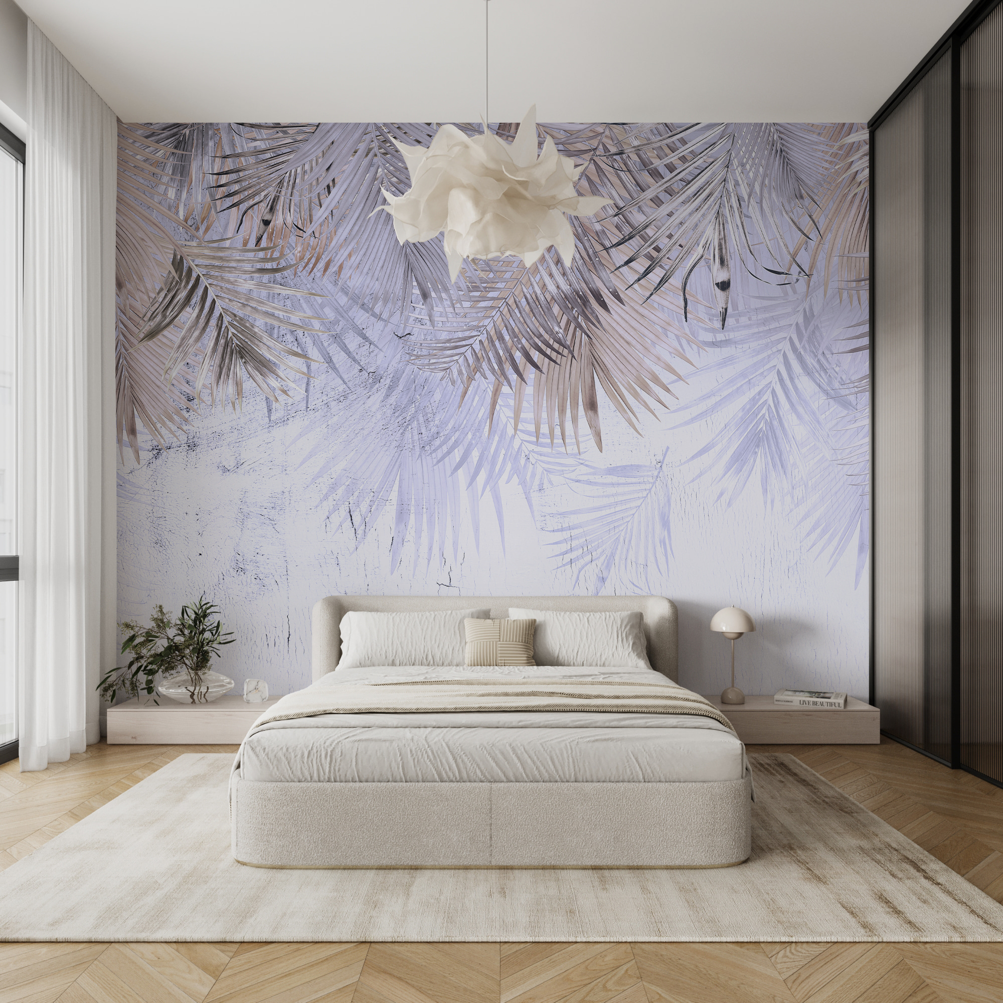 Transformez votre espace en paradis tropical grâce à cette superbe peinture murale représentant des feuilles de palmier sur un fond frais. Imaginez que vous entrez dans votre chambre et que vous avez l’impression d’être entré directement dans un centre de villégiature. Les tons doux et neutres créent une ambiance détendue qui vous invite à vous relaxer après une longue journée. Parfait pour un coin lecture ou un bureau inspirant, il ajoute une touche de nature sans avoir à entretenir de vraies plantes. Qui n’aime pas un peu de verdure dans sa vie ? Le design joue subtilement avec la lumière, donnant à vos murs une atmosphère à la fois vivante et calme. Si les murs pouvaient parler, celui-ci chuchoterait la sérénité.