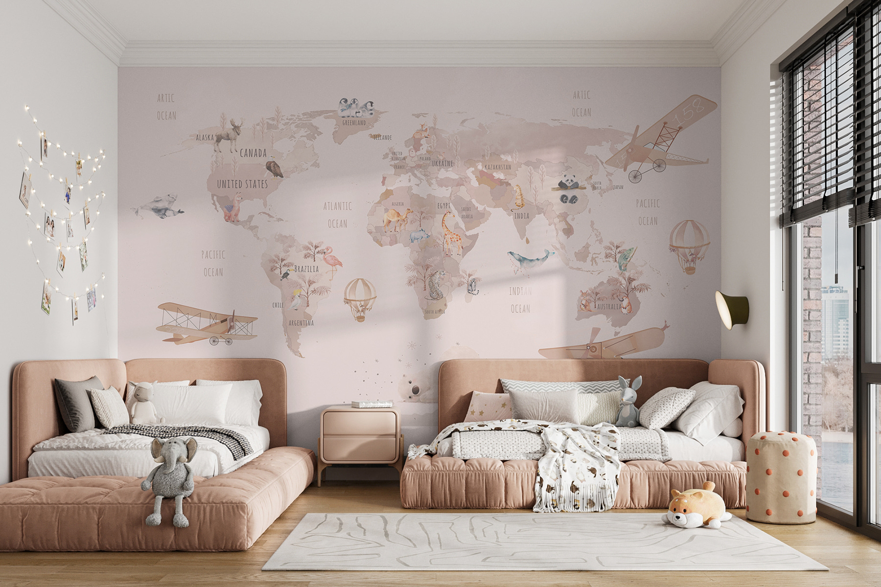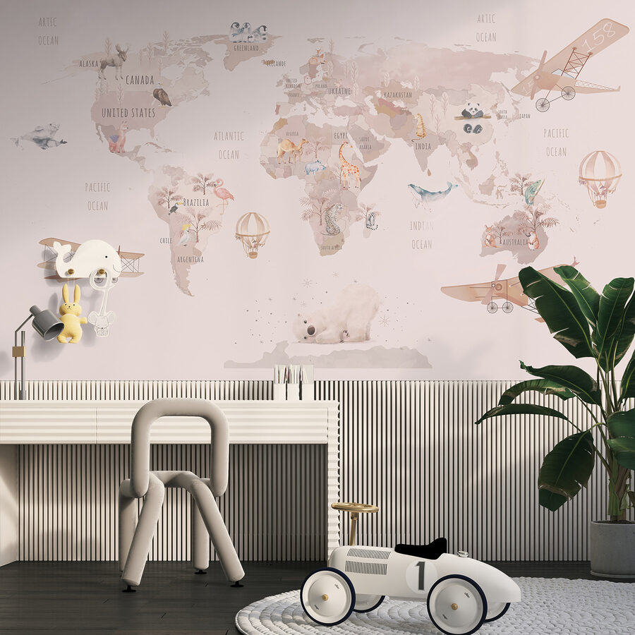 Transformez n’importe quelle pièce en un voyage fantaisiste autour du monde grâce à cette délicieuse peinture murale “Carte du monde”. C’est une véritable lettre d’amour à l’aventure, avec des illustrations enchanteresses d’animaux et d’avions enjoués, qui éveillent instantanément la curiosité et l’envie de voyager. Imaginez vos enfants montrant du doigt leurs pays préférés ou rêvant de contrées exotiques lorsqu’ils sont entourés de ces charmants dessins. Avec ses couleurs douces et ses éléments ludiques, il transforme les murs en une toile d’imagination, parfaite pour les crèches ou les salles de jeux. Cette peinture murale ne se contente pas de décorer, elle invite à raconter des histoires et à rêver. Alors, commençons à explorer !