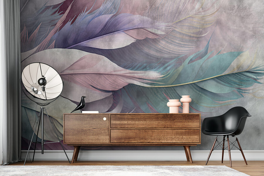 Transformez votre espace avec cette peinture murale représentant des plumes colorées dansant sur un fond doux et discret. C’est comme si la nature avait apporté un pinceau sur vos murs. Imaginez que vous sirotiez un café dans un coin confortable, en admirant ces teintes douces qui semblent changer avec la lumière – rose, sarcelle et lavande tourbillonnant ensemble dans une étreinte de rêve. Cette peinture murale n’est pas seulement un décor, c’est aussi un sujet de conversation, un facteur d’ambiance. Que ce soit dans une chambre à coucher ou dans un salon animé, ces plumes peuvent inspirer un sentiment de calme ou déclencher un élan de créativité. C’est comme une petite œuvre d’art qui murmure à l’âme. En l’accrochant, on a l’impression d’inviter une brise enchanteresse à l’intérieur, et honnêtement, qui n’en voudrait pas ?