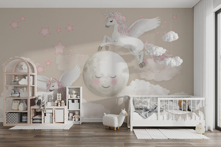 Imaginez la chambre de votre enfant transformée en un pays de rêve grâce à cette adorable peinture murale “Licorne avec des ailes et une corne”. Elle regorge de nuages duveteux, d’étoiles scintillantes et des licornes les plus mignonnes et les plus magiques qui soient en train de voler. L’ensemble est doux, rêveur et parfait pour stimuler l’imagination des tout-petits. Imaginez des histoires à l’heure du coucher sous le doux regard de ces licornes enchantées – chaque nuit ressemble à un voyage dans un lointain royaume de contes de fées. C’est comme si un morceau de magie était accroché au mur, créant des moments de joie et d’émerveillement, encore et encore.