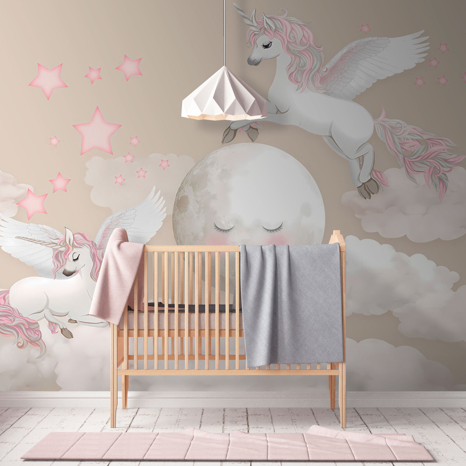 Imaginez la chambre de votre enfant transformée en un pays de rêve grâce à cette adorable peinture murale “Licorne avec des ailes et une corne”. Elle regorge de nuages duveteux, d’étoiles scintillantes et des licornes les plus mignonnes et les plus magiques qui soient en train de voler. L’ensemble est doux, rêveur et parfait pour stimuler l’imagination des tout-petits. Imaginez des histoires à l’heure du coucher sous le doux regard de ces licornes enchantées – chaque nuit ressemble à un voyage dans un lointain royaume de contes de fées. C’est comme si un morceau de magie était accroché au mur, créant des moments de joie et d’émerveillement, encore et encore.