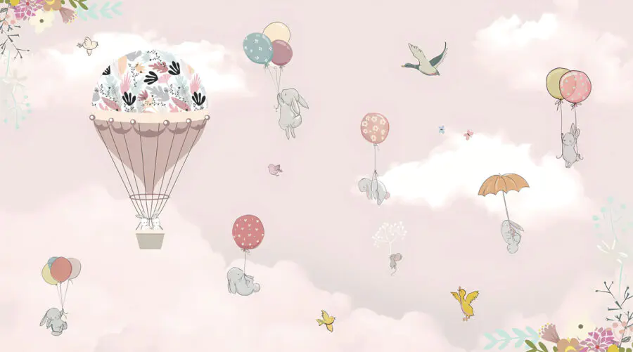 Imaginez que vous vous réveillez dans un monde enchanteur où d’adorables lapins flottent dans le ciel, agrippés à des ballons colorés et à des parapluies – cette peinture murale est une pure magie pour toute chambre d’enfant ! Les douces teintes pastel et les montgolfières fantaisistes créent une évasion de rêve sur le mur. C’est comme entrer dans un livre de contes chaque matin. Parfait pour stimuler l’imagination et ajouter une touche de charme. De plus, qui ne sourirait pas devant un lapin sautant en parachute avec un parapluie ? Idéal pour les enfants et tous ceux qui sont jeunes de cœur. Cette peinture murale murmure pratiquement des histoires à l’heure du coucher ! Sensations douillettes garanties.