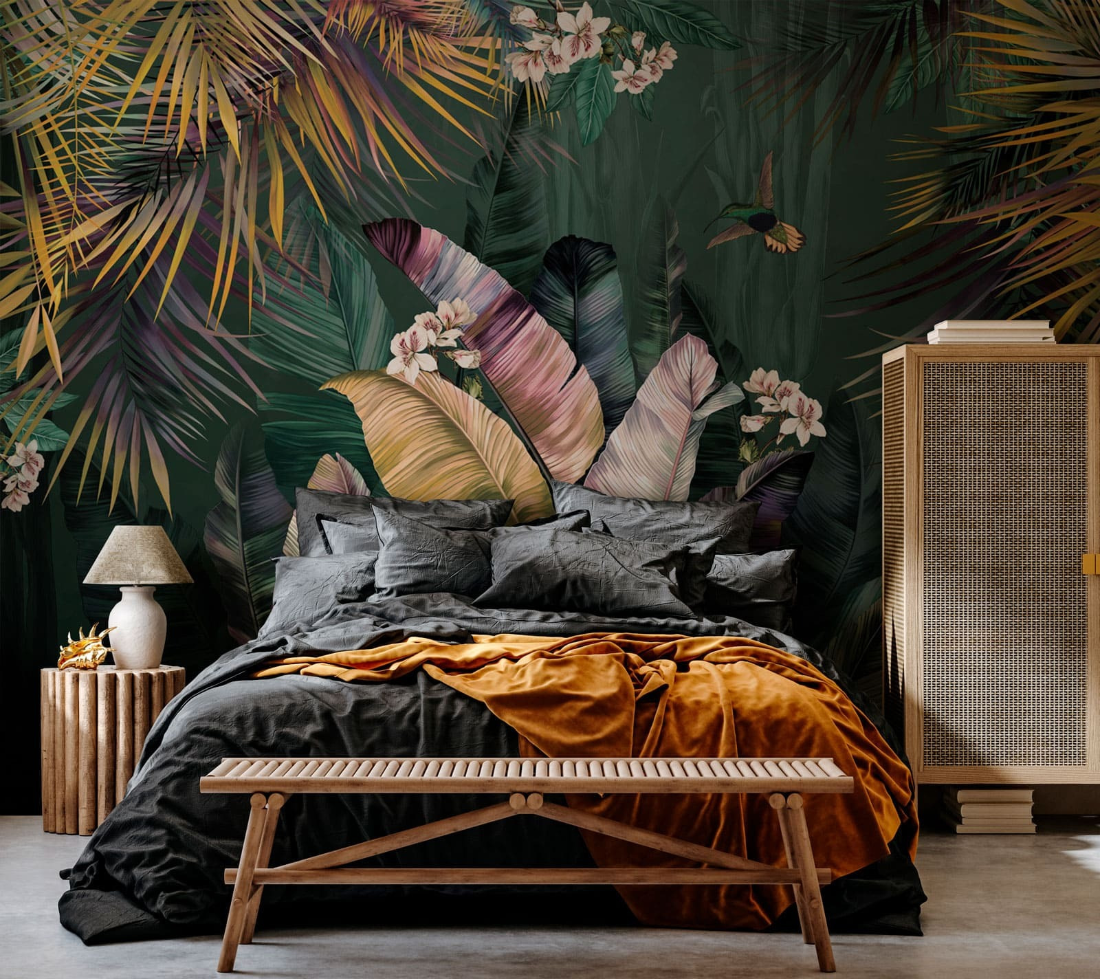 Cette peinture murale s’intègre parfaitement parmi les peintures murales contemporaines, les papiers peints design pour le mur et bien d’autres encore. Il s’intègre partout, que vous souhaitiez embellir le salon, ajouter une touche de couleur à une chambre à coucher ou même égayer un couloir terne. Le feuillage et les vibrations de la jungle donnent à chaque coup d’œil l’impression d’une évasion dans un paradis verdoyant et serein.