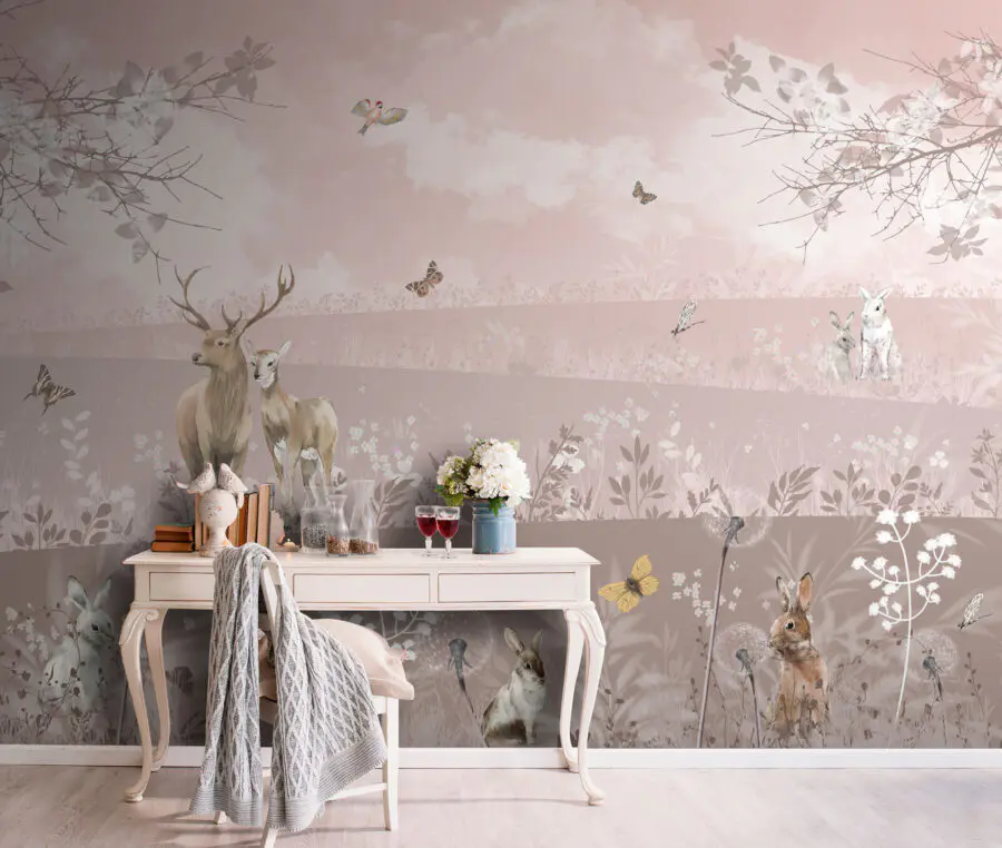 Imaginez que vous entrez dans une pièce qui ressemble à une forêt de rêve où des cerfs et des lapins se promènent en toute décontraction, sans se soucier du monde. C’est l’ambiance que vous procurera la peinture murale “Cerfs et lapins dans un paysage serein”. Elle est parfaite pour transformer n’importe quel espace en un lieu de retraite calme. Qu’il s’agisse de la chambre d’une fille, d’un coin douillet ou même du salon, cette peinture murale apporte la beauté de la nature à l’intérieur. Vous vous surprendrez à rêvasser en imaginant de douces brises et le bruissement des feuilles, tout en buvant votre café du matin. Avec ses teintes douces et ses adorables animaux sauvages, elle vous invite à lire un bon livre ou à passer un moment tranquille. Si vous souhaitez ajouter un peu de magie à vos murs, c’est la solution qu’il vous faut. Et qui ne voudrait pas d’un peu de magie forestière à la maison ?