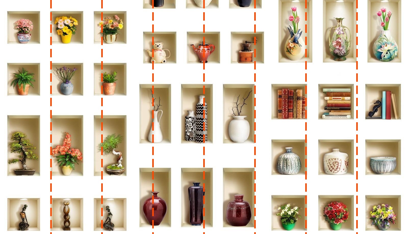 Votre papier peint sera préparé selon les dimensions que vous avez indiquées lors du processus de commande. La toile sera divisée en sections pratiques, chacune d’une largeur maximale de 50 cm.