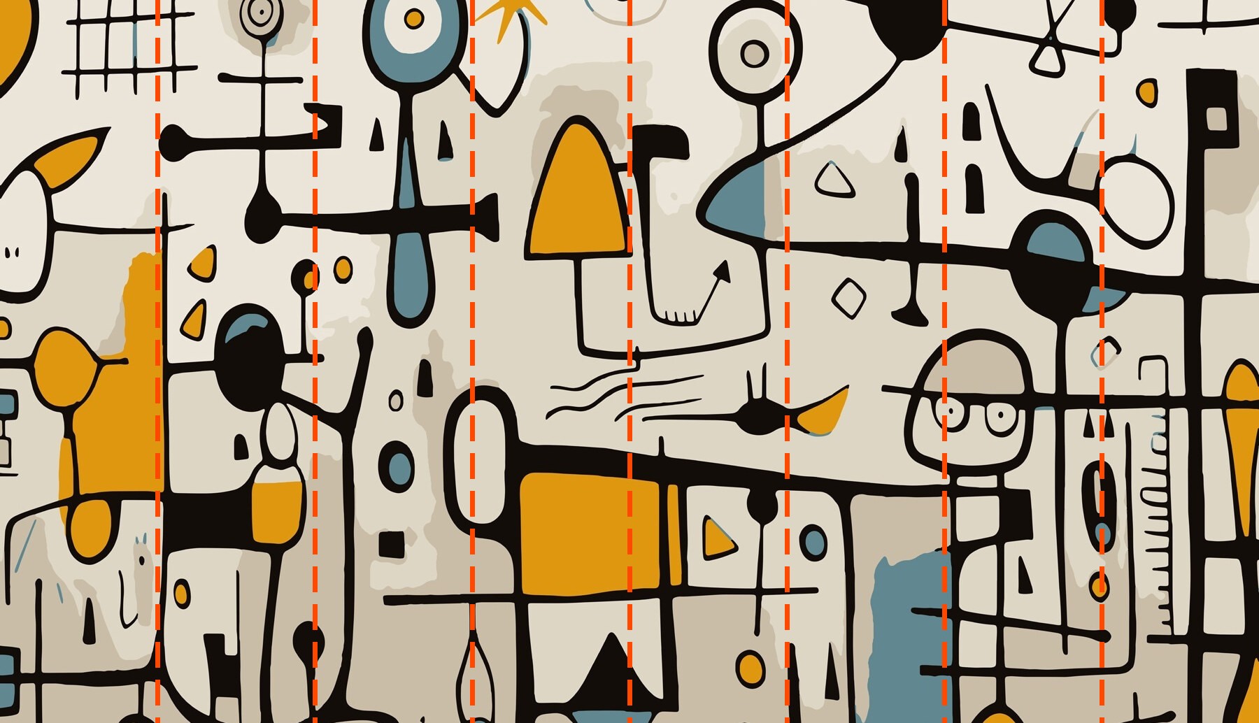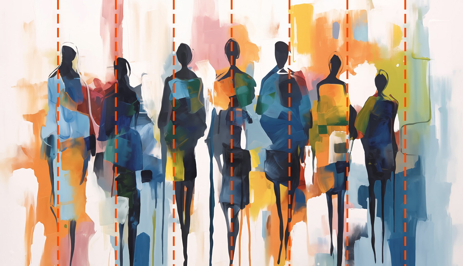 Papier peint Œuvre d'art colorée avec des personnes et des formes