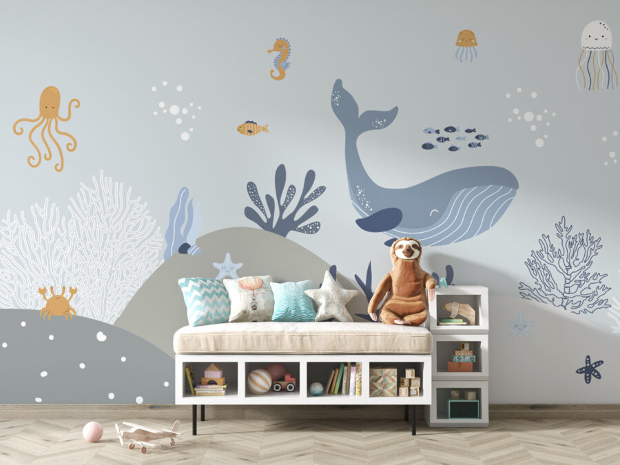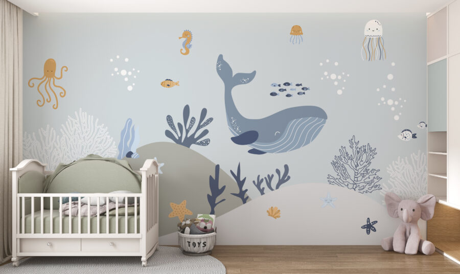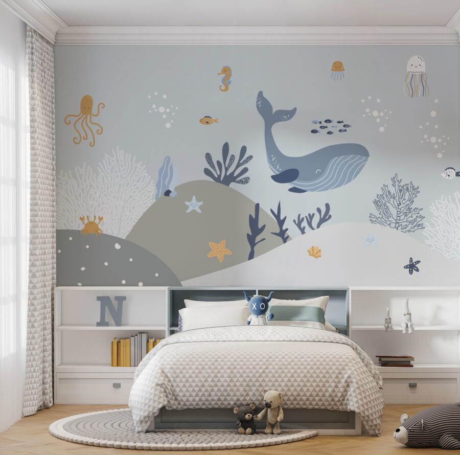 L’ajout de cette peinture murale pourrait rendre encore plus passionnantes les histoires d’amis sous-marins racontées à l’heure du coucher. Les adorables pieuvres, baleines et étoiles de mer semblent presque prendre vie, invitant les enfants à d’innombrables aventures imaginatives. De plus, les couleurs douces et les animaux sympathiques constituent une toile de fond parfaite pour la sieste et les jeux.