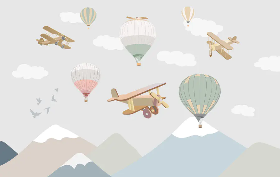 Vous avez un aventurier dans la famille ? La peinture murale “Montgolfière dans le ciel” est comme une fenêtre ouverte sur un pays de rêve fantaisiste. Parfaite pour les chambres d’enfants et les chambres de petits explorateurs, cette peinture murale représente des montgolfières pastel et des avions anciens sur fond de nuages doux et cotonneux, s’envolant au-dessus de montagnes sereines. Imaginez ces petits rires tandis que votre enfant s’endort en rêvant d’aventures aériennes ! Cette collection est à la fois apaisante et excitante, elle stimule l’imagination tout en gardant un aspect très ludique. Rêves agréables garantis !