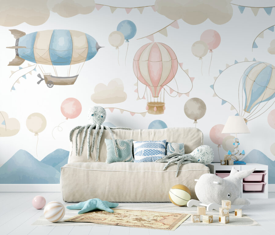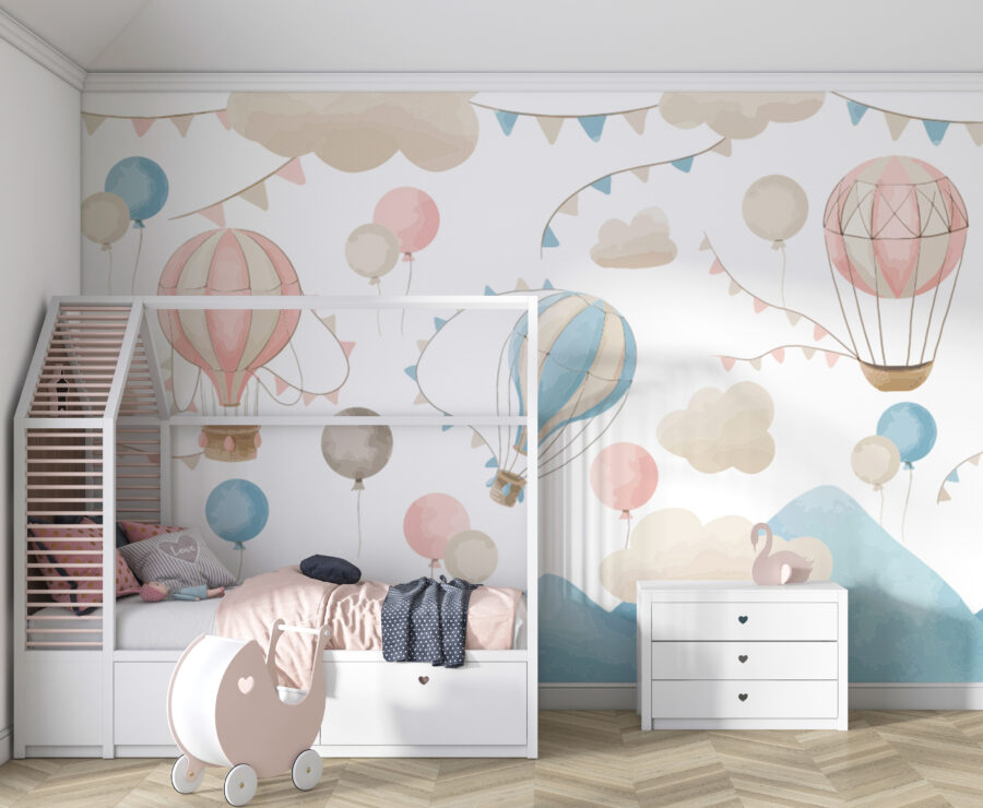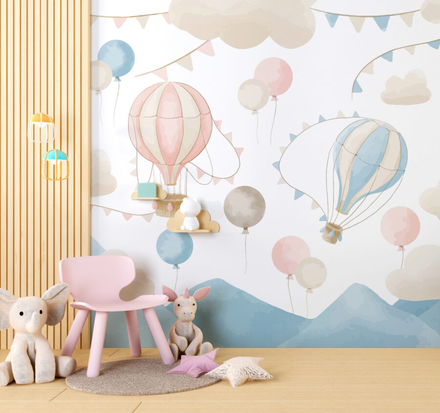 Imaginez cette adorable peinture murale, représentant des montgolfières roses et blanches flottant sereinement au milieu de nuages doux et de guirlandes aux couleurs pastel. Chaque fois que vous entrez dans la pièce, vous avez l’impression de pénétrer dans un monde de rêve et de fantaisie. Parfait pour l’espace de votre enfant, surtout s’il aime l’aventure et la magie. Cette peinture murale convient parfaitement aux chambres d’enfants, aux salles de jeux ou à tout autre espace qui a besoin d’une touche d’émerveillement.