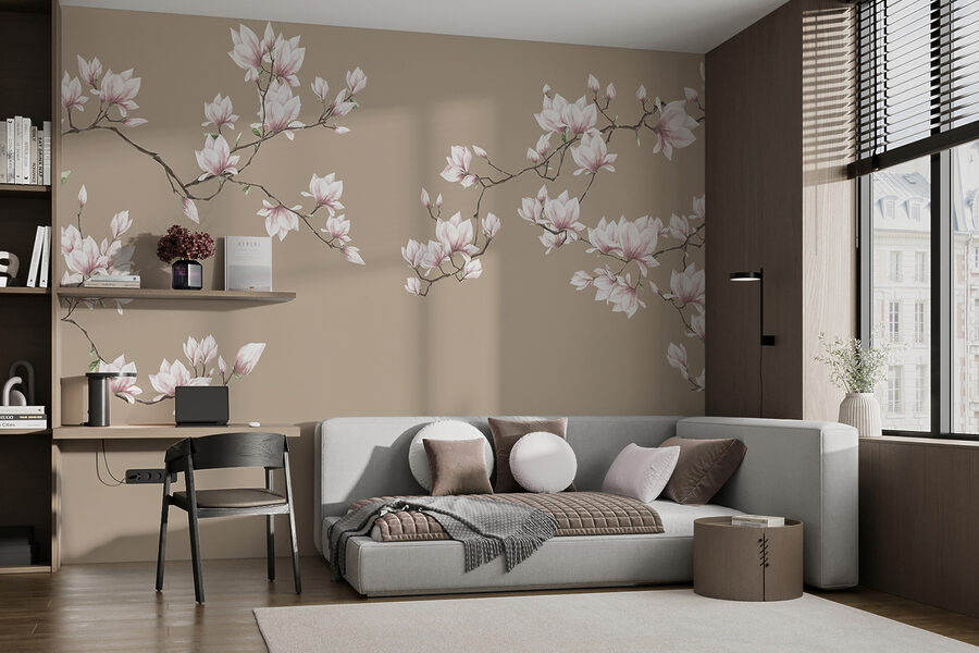 Transformez votre espace avec l’enchanteresse peinture murale Blooming Magnolia Branches en pastel ! Imaginez que vous entrez dans une pièce où de délicates fleurs de magnolia s’épanouissent sur les murs, créant instantanément une ambiance chaleureuse. La douce palette pastel évoque la chaleur et la tranquillité, ce qui est parfait pour un coin lecture confortable ou même un espace de vie animé.