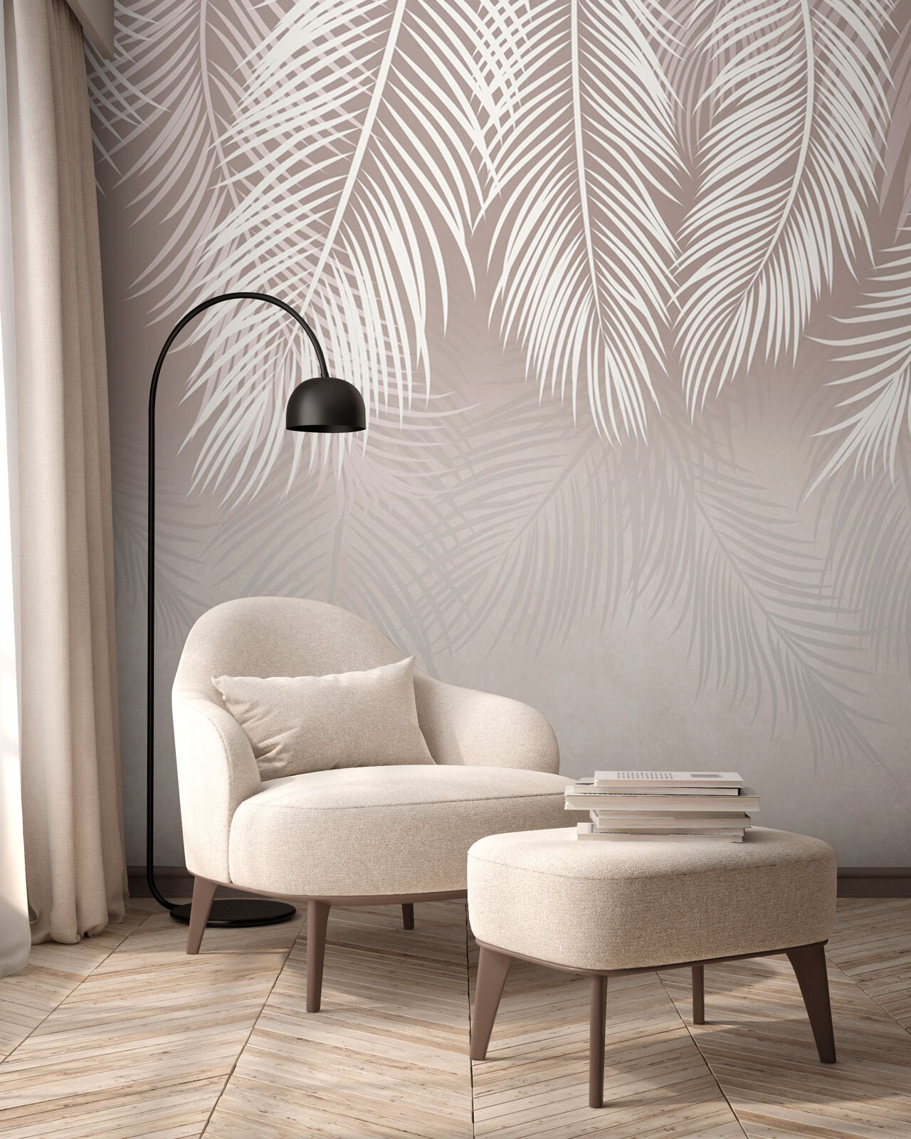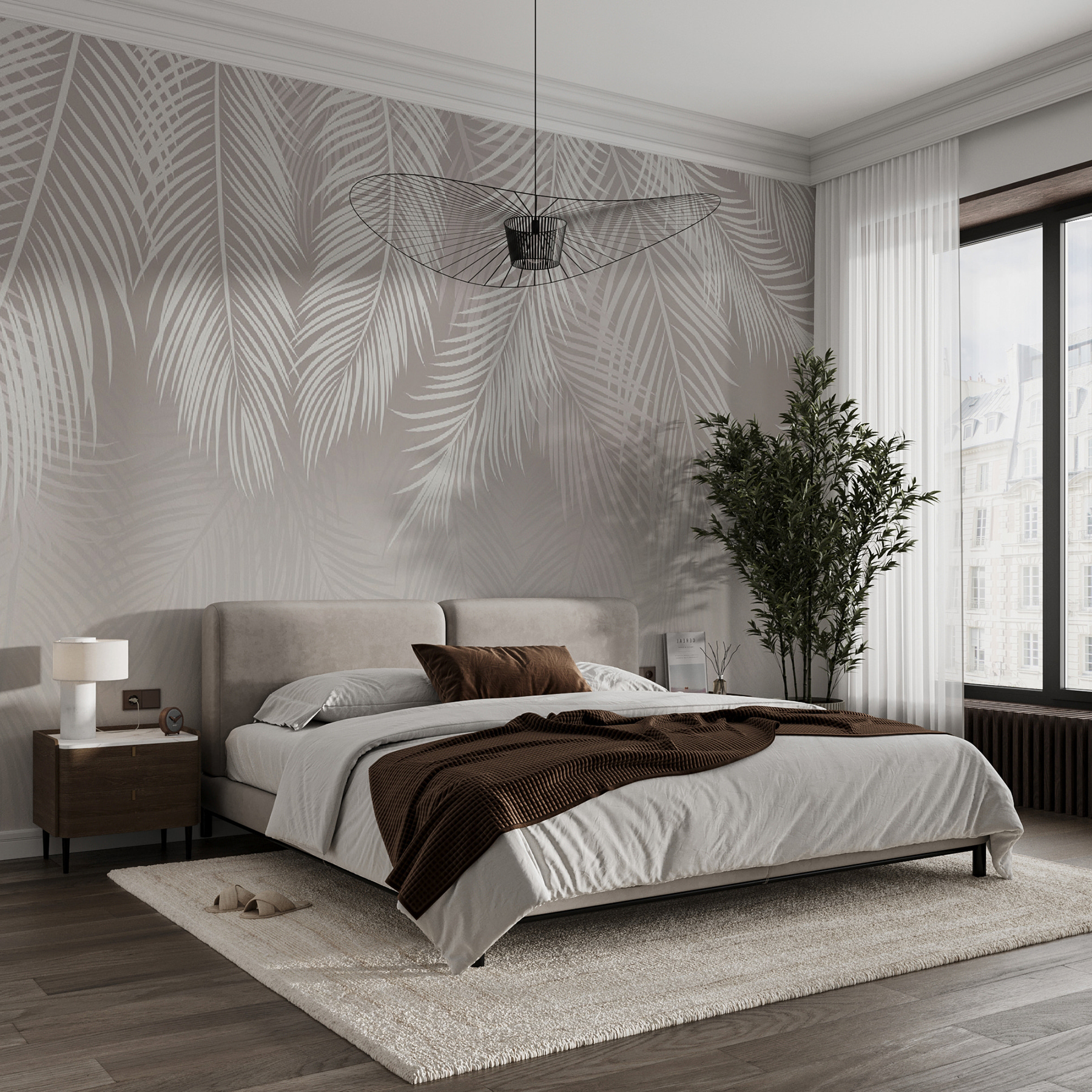 Transformez votre espace avec cet élégant motif de feuilles de palmier, un mélange parfait de tranquillité et de style. Imaginez que vous entrez dans une pièce qui vous invite à la détente à chaque coup d’œil. Les feuilles douces et subtiles créent une toile de fond apaisante, comme si vous pénétriez dans un paradis tropical serein sans quitter votre maison. C’est comme si vous aviez une mini-vacance directement sur votre mur. Vos amis vous demanderont peut-être si vous avez installé une fenêtre donnant sur un jardin luxuriant. Parfaite pour un coin lecture confortable ou un salon animé, cette peinture murale apporte une bouffée d’air frais et une touche de nature à l’intérieur.