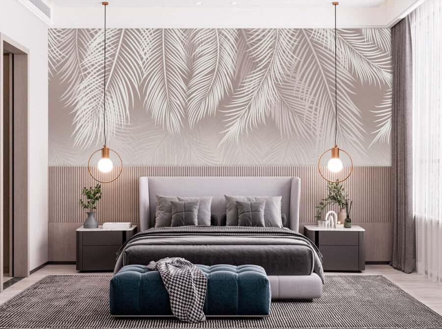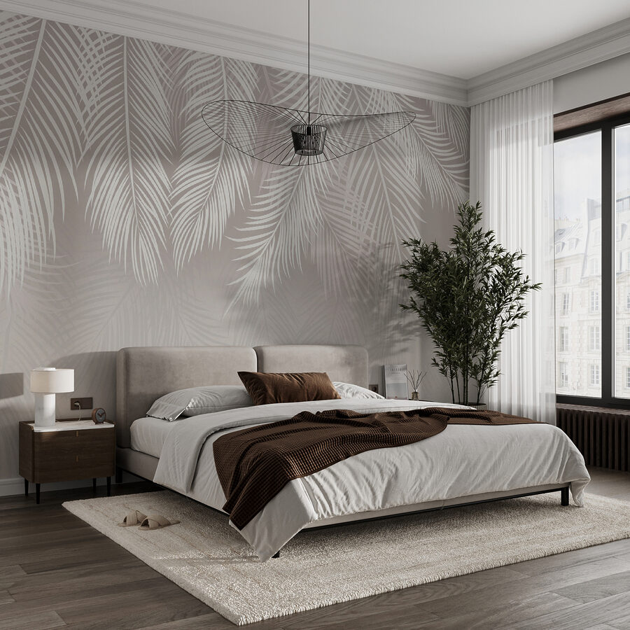 Transformez votre espace avec cet élégant motif de feuilles de palmier, un mélange parfait de tranquillité et de style. Imaginez que vous entrez dans une pièce qui vous invite à la détente à chaque coup d’œil. Les feuilles douces et subtiles créent une toile de fond apaisante, comme si vous pénétriez dans un paradis tropical serein sans quitter votre maison. C’est comme si vous aviez une mini-vacance directement sur votre mur. Vos amis vous demanderont peut-être si vous avez installé une fenêtre donnant sur un jardin luxuriant. Parfaite pour un coin lecture confortable ou un salon animé, cette peinture murale apporte une bouffée d’air frais et une touche de nature à l’intérieur.