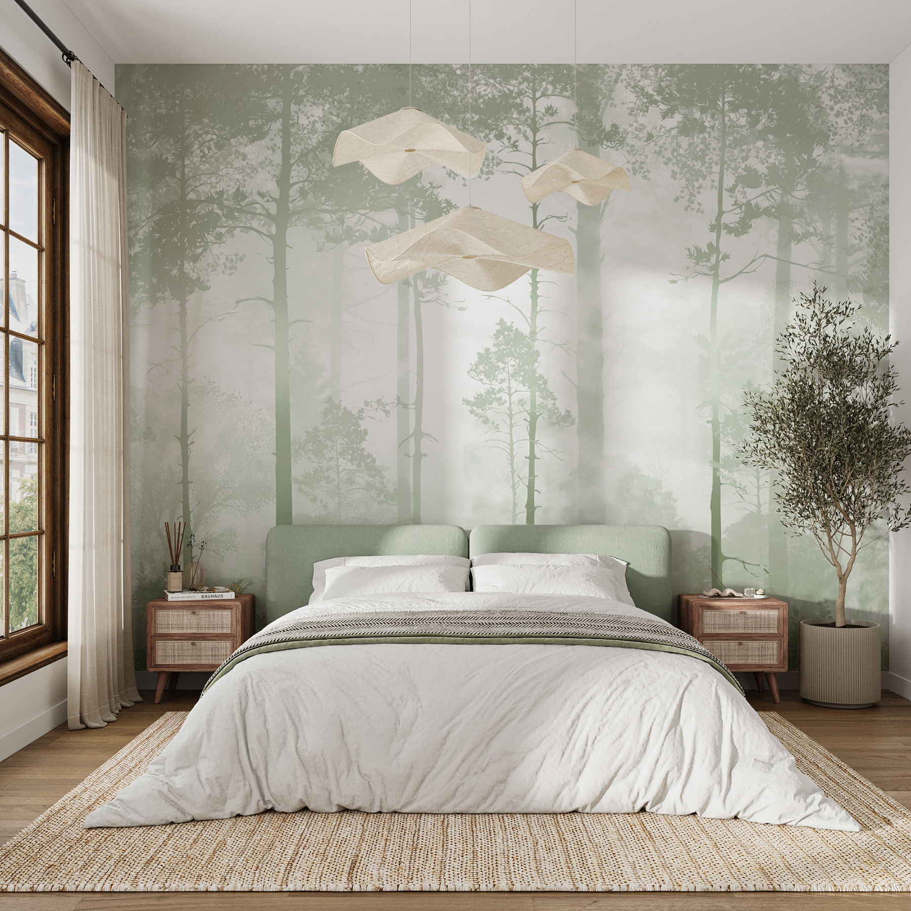 Transformez n’importe quelle pièce en une retraite paisible grâce à cette fresque de forêt brumeuse. Imaginez que vous vous réveillez avec la vue paisible de grands arbres enveloppés de brume, comme si vous entriez dans un rêve apaisant. Il ne s’agit pas seulement d’un revêtement mural, mais d’une invitation à respirer l’air frais de la forêt, même si vous sirotez un café dans votre cuisine. Imaginez un coin lecture confortable entouré de cette toile de fond sereine, parfaite pour se lover dans un bon livre. Et qui ne voudrait pas que son espace soit un peu plus magique ? Avec des verts discrets et des motifs doux, c’est comme si la nature avait décidé de s’installer dans votre salon. Parfait pour les moments où la vie semble un peu trop chaotique. Laissez cette peinture murale apporter un peu de paix dans votre maison.