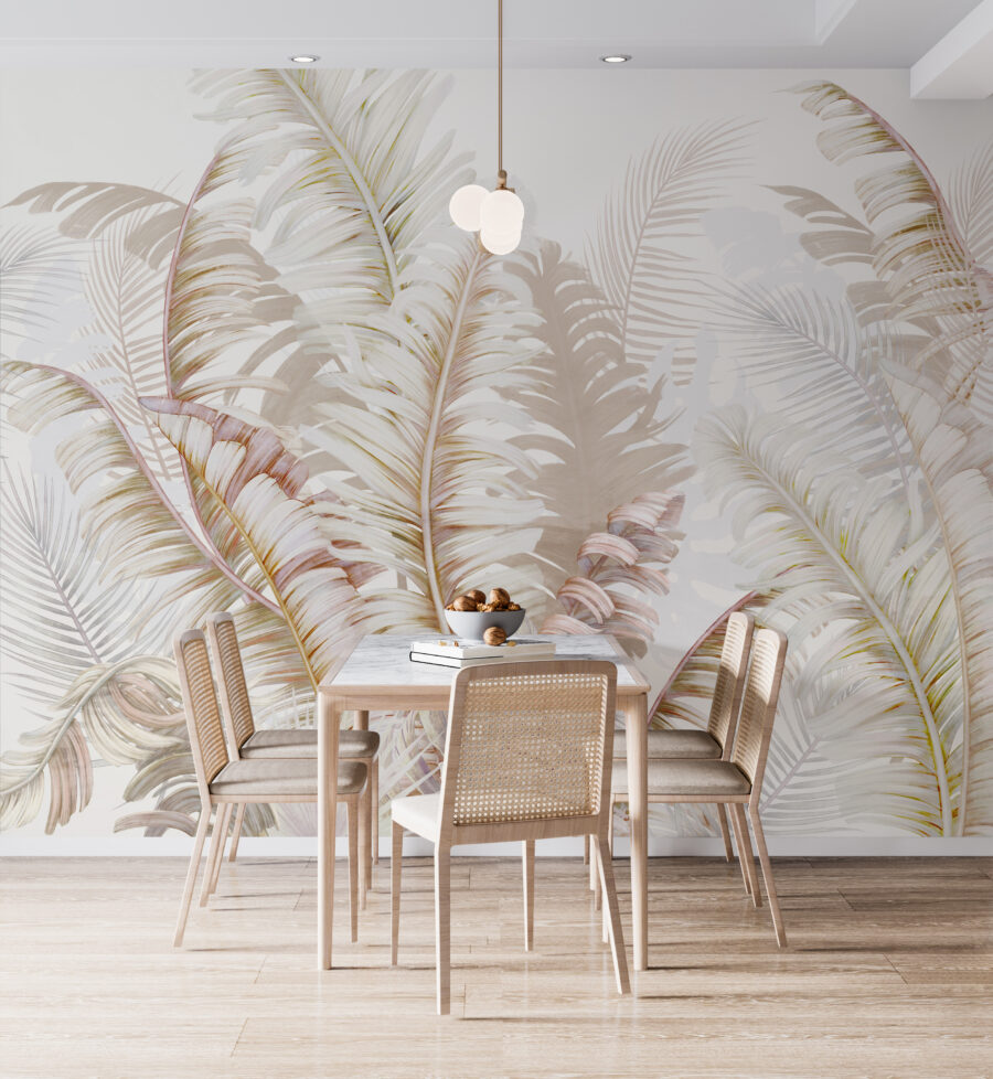 Imaginez que vous êtes assis dans votre coin préféré, entouré de la beauté sereine de la nature sans même sortir de chez vous. La peinture murale “Tropical Leaves in Gentle Hues” vous y emmène. Les tons doux et discrets des feuilles tropicales créent une oasis de calme, parfaite pour toute pièce ayant besoin d’une touche de tranquillité. Ce n’est pas seulement du papier peint, c’est comme un doux murmure de la forêt. Ne sentez-vous pas le bruissement de la brise dans les feuilles ? Installez cette peinture murale design et transformez votre espace en une retraite paisible, votre propre petit coin de paradis.