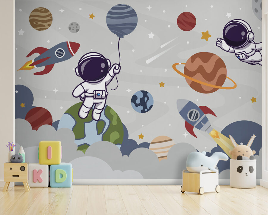 Découvrez cette adorable peinture murale “Dessin animé d’une planète”, parfaite pour susciter la joie et l’imagination dans les chambres d’enfants ! Imaginez les petits explorateurs allongés dans leur lit et rêvant de flotter dans l’espace, entourés de planètes fantaisistes, d’astronautes sympathiques et de jolies fusées filant à toute allure. Les nuages doux et les étoiles amusantes ajoutent de la chaleur et de la tranquillité, pour que l’heure du coucher soit un jeu d’enfant. Les couleurs sont très vives, mais pas trop dominantes, juste ce qu’il faut pour créer un espace joyeux et apaisant. Il est idéal pour les chambres d’enfants, les salles de jeux ou tout autre endroit qui a besoin d’une touche d’aventure dans l’espace. Ce n’est pas seulement une décoration, c’est aussi une toile de fond pour d’innombrables histoires et rires. Les petits esprits curieux l’adoreront !