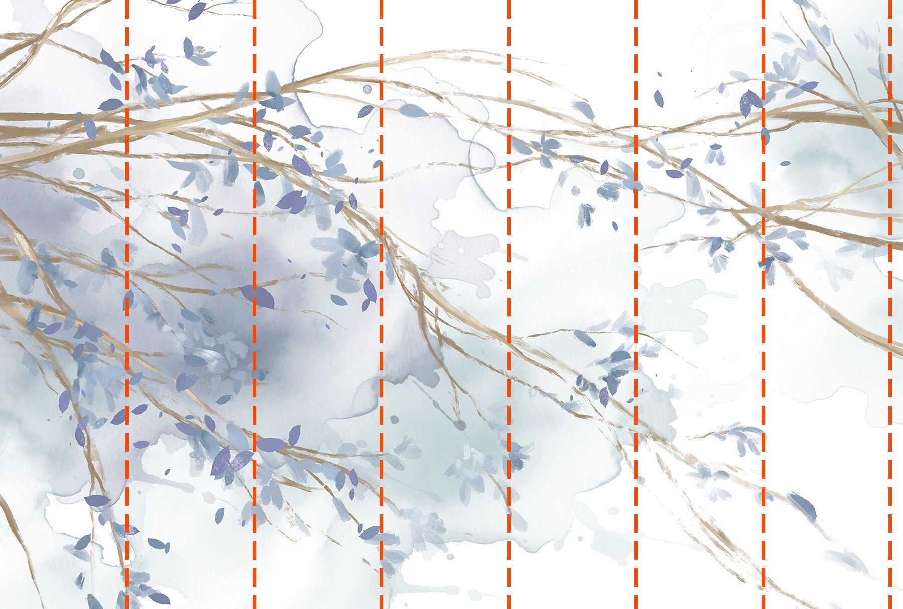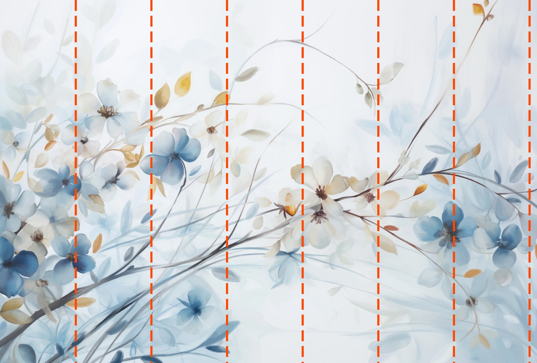Votre papier peint sera préparé selon les dimensions que vous avez indiquées lors du processus de commande. La toile sera divisée en sections pratiques, chacune d’une largeur maximale de 50 cm.