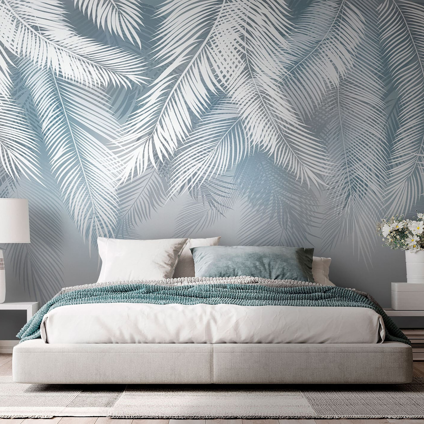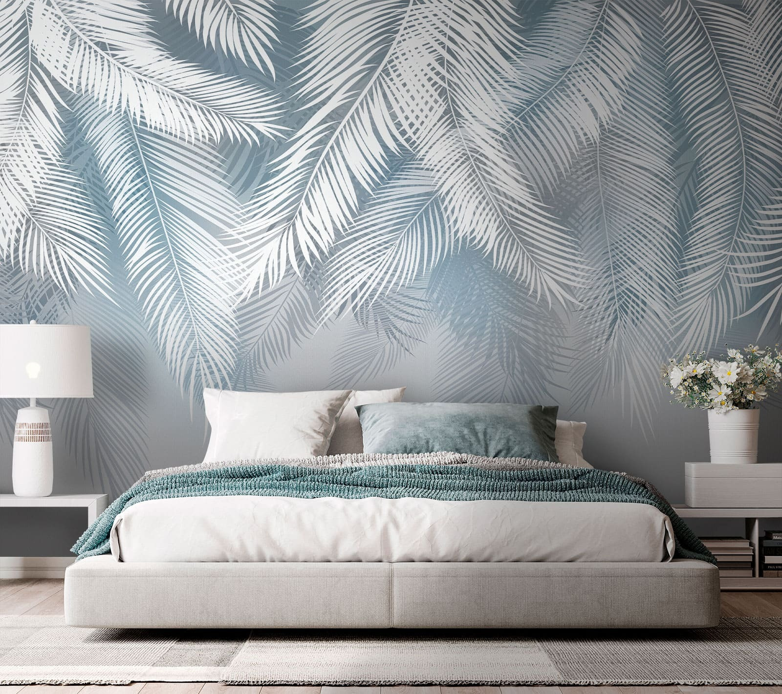 Papier peint Feuilles de palmier argentées sur fond clair. (UGS: u94496)