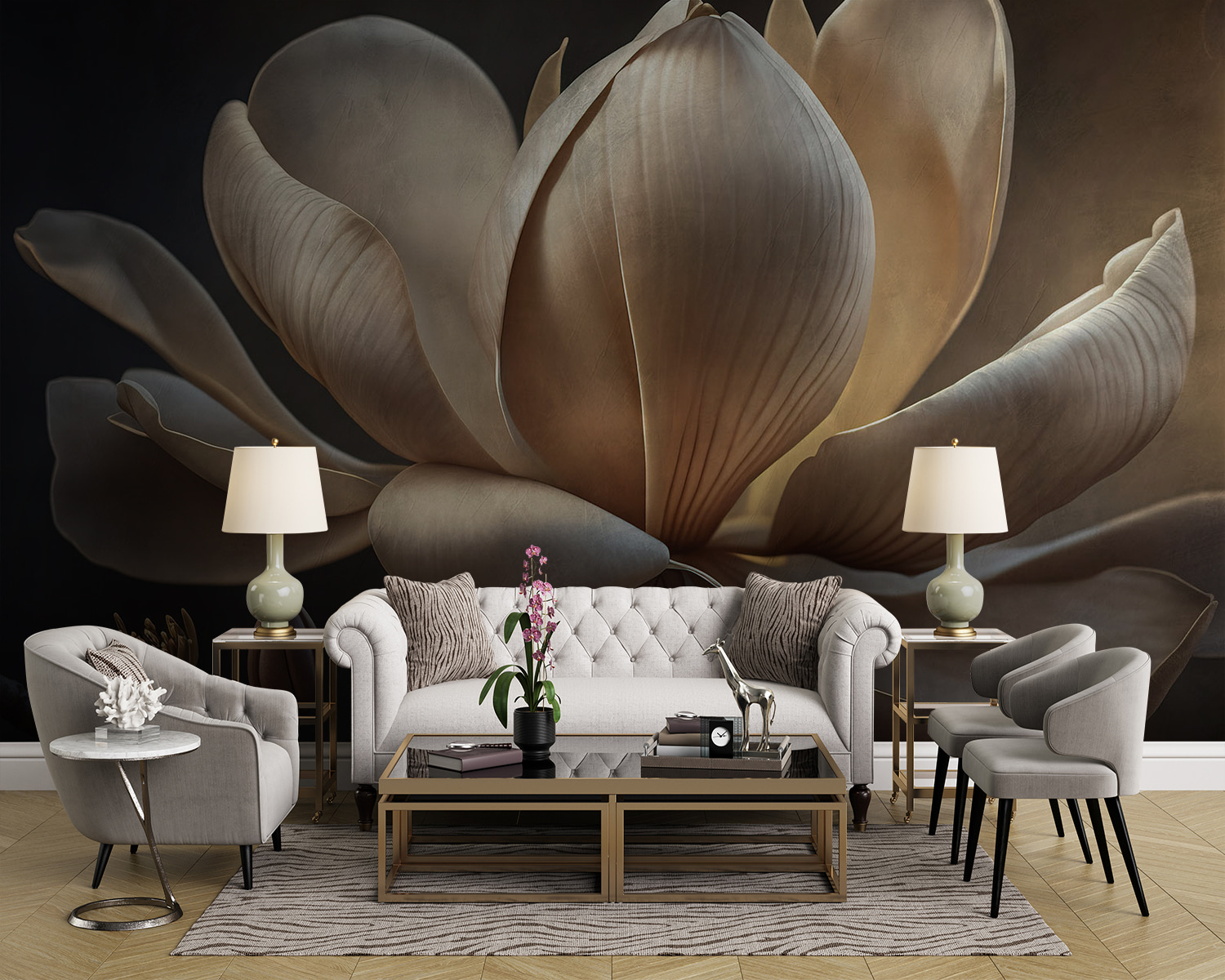 Transformez n’importe quelle pièce en une évasion sereine grâce à cette peinture murale représentant de délicats magnolias se prélassant dans une douce lumière. Imaginez que vous entrez dans votre espace et que vous êtes accueilli par l’élégance apaisante de ces jolies fleurs – c’est comme si vous faisiez entrer le jardin à l’intérieur. Parfait pour un coin lecture confortable ou un mur vide qui a besoin d’un peu d’amour. Les tons sourds créent une atmosphère apaisante, et il est difficile de ne pas pousser un soupir de soulagement. Et puis, on entend presque le bruissement des feuilles ou le doux bourdonnement de la nature. C’est une petite touche de magie qui apporte de la chaleur à votre vie quotidienne. N’est-ce pas agréable d’avoir un rappel quotidien de la beauté de la nature chez soi ?