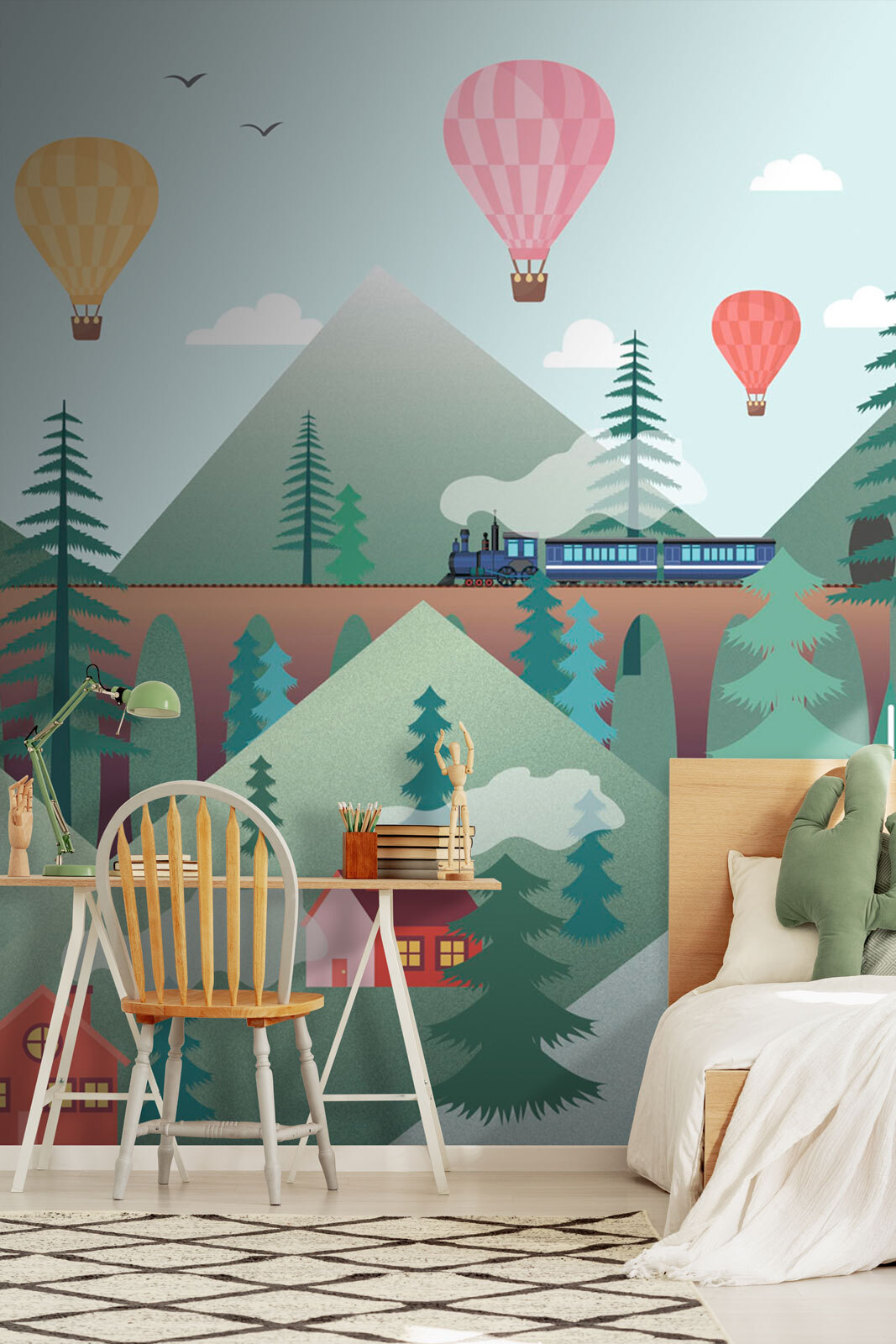 Vous avez déjà rêvé de flotter dans le ciel à bord d’une montgolfière ? Cette peinture murale fantaisiste “Pink Hot Air Balloon” pourrait bien être la meilleure chose à faire. Imaginez la transformation d’une chambre d’enfant ou d’une salle de jeux en un paradis pastel où des ballons colorés flottent au-dessus de charmantes maisons et de montagnes majestueuses. C’est comme une page d’un livre de contes, où chaque regard alimente l’imagination de votre enfant. Lumineux, amusant et vraiment adorable, il apporte un sentiment de calme et d’émerveillement dans n’importe quelle pièce. De plus, qui n’aimerait pas avoir une toile de fond douillette et pittoresque pour raconter des histoires à l’heure du coucher ou des aventures à l’heure du jeu ? Ces petits détails – la fumée gonflée des cheminées et les montagnes sereines – ajoutent une touche de magie qui est si invitante. Il ne s’agit pas seulement d’un décor, mais d’une dose quotidienne de joie enveloppée dans une peinture murale.