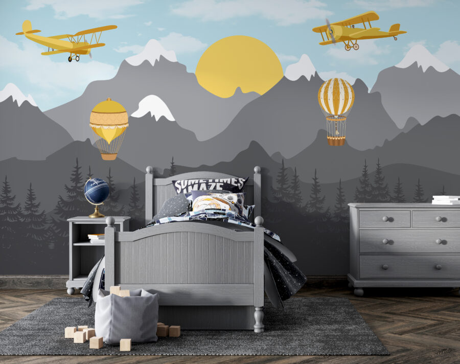 Transformez la chambre d’un enfant en une aventure céleste fantaisiste avec cette délicieuse peinture murale représentant un avion jaune s’élevant au-dessus de montagnes majestueuses et de montgolfières enjouées. Imaginez l’excitation des petits qui regardent en l’air, rêvant de pays lointains et de l’excitation du vol. Les bleus doux et les gris atténués créent une toile de fond apaisante, tandis que le jaune joyeux attire l’attention et suscite la joie. Accrochez-le dans une chambre ou une aire de jeu, et regardez l’imagination s’envoler ! C’est comme avoir un petit bout de ciel à l’intérieur, mais peut-être pas avec de vrais nuages. Parfait pour les esprits aventureux !