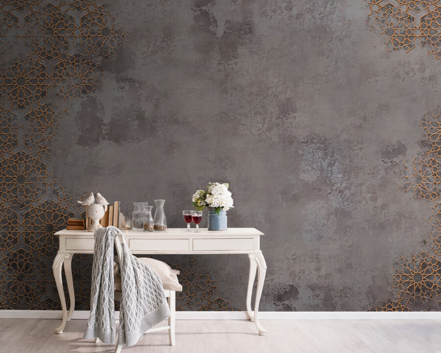 Imaginez : vous avez un mur qui ne demande qu’à être aimé. C’est là qu’intervient la “peinture murale – motif géométrique complexe sur texture”. C’est un peu fort, mais laissez-moi vous dire que c’est comme si vous donniez à votre mur un début de conversation. Ce design allie une ambiance brute et concrète à ces motifs géométriques hypnotiques. Le résultat ? Un look moderne et mystique qui donne à votre pièce l’impression d’être une exposition d’art.