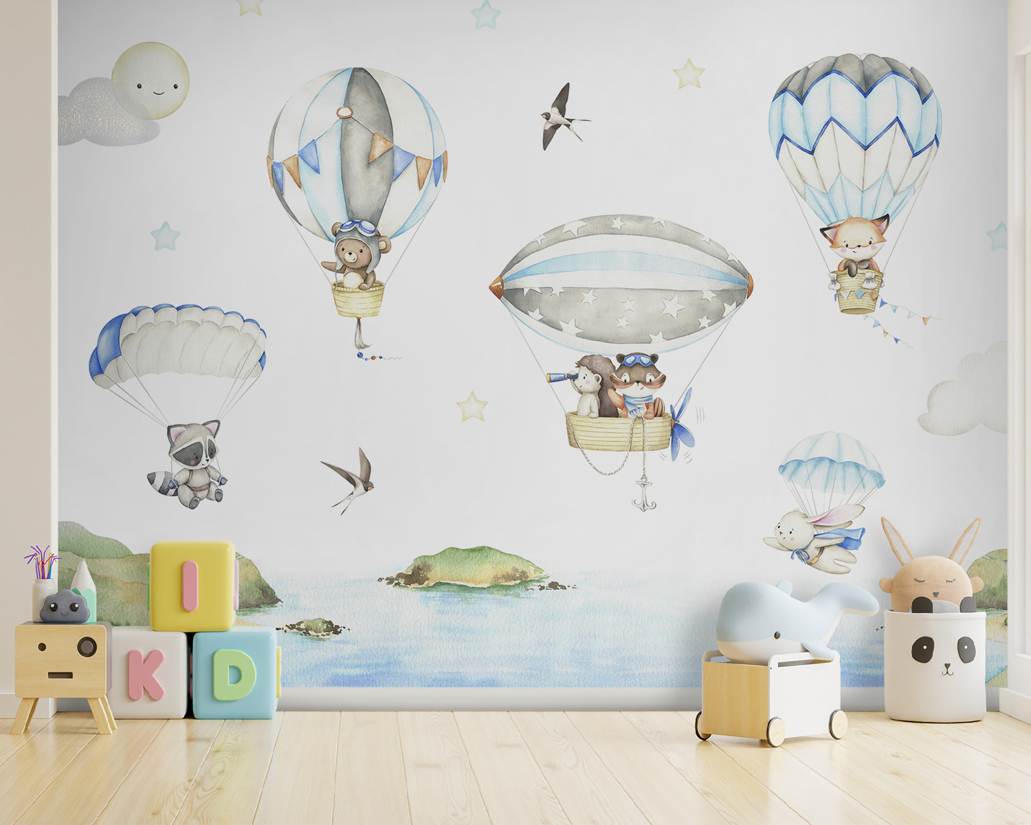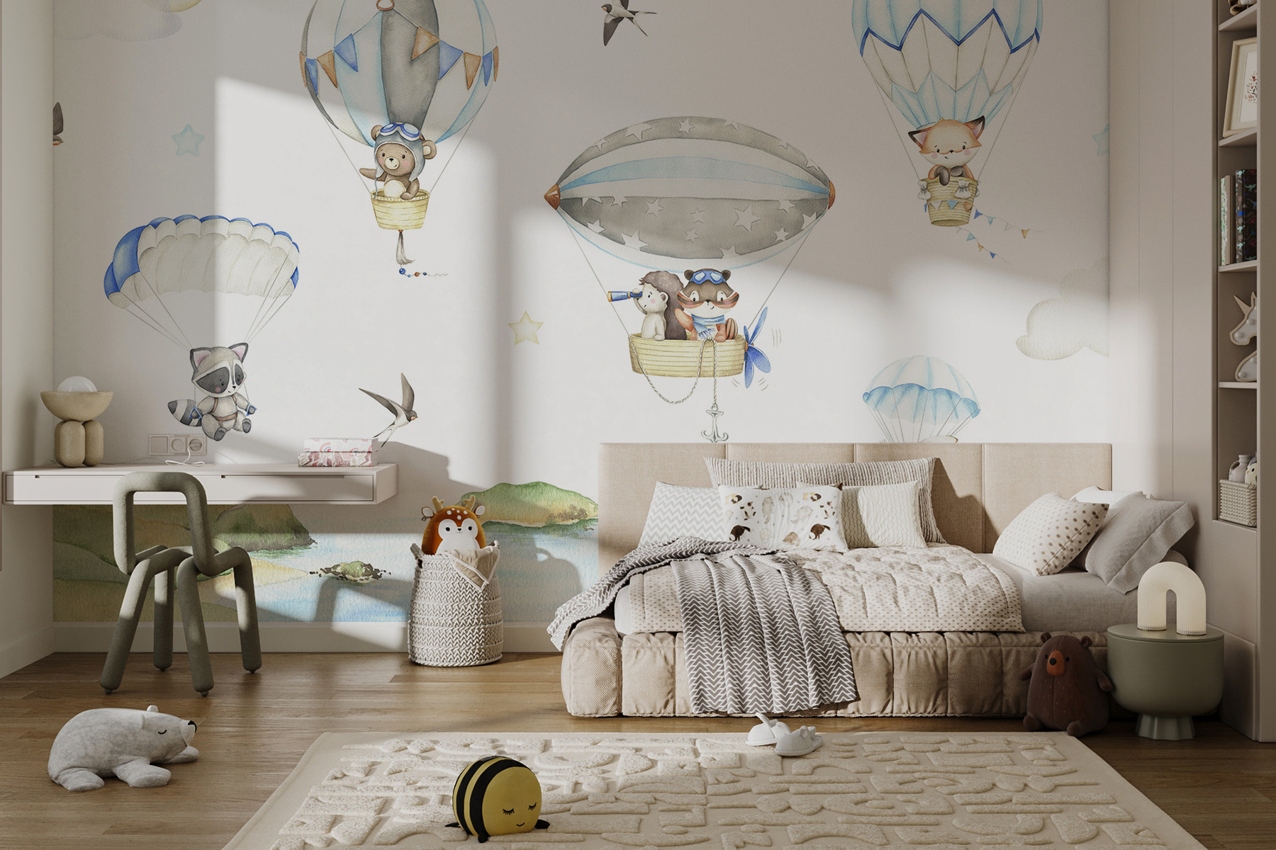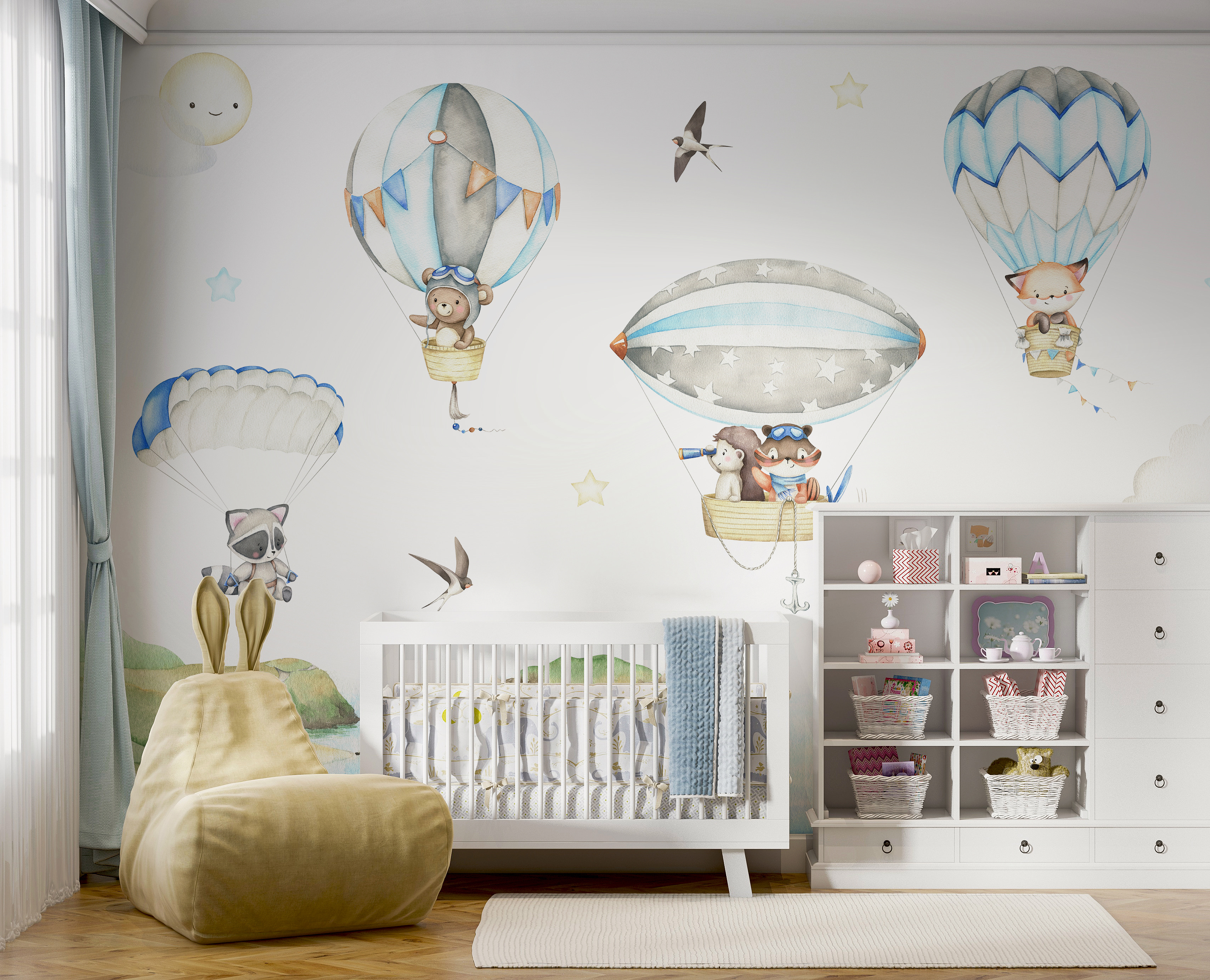 Pourquoi se contenter de murs sobres quand vous pouvez emmener votre enfant à l’aventure avec cette adorable peinture murale ? “L’ours en peluche dans une montgolfière” est trop mignon pour qu’on y résiste. Imaginez un adorable ours en peluche, équipé de lunettes d’aviateur, flottant doucement dans le ciel. Le charme de cette scène de rêve est parfait pour susciter des histoires sans fin et apaiser les rêves nocturnes. Parfaite pour les chambres d’enfants, elle ajoute une touche ludique, sûre et douce pour les yeux. Sérieusement, qui n’aimerait pas se réveiller devant cette scène chaque matin ? On a l’impression d’entrer dans un livre d’images où chaque jour est une nouvelle aventure dans le ciel. Les pastels doux et les personnages fantaisistes font en sorte qu’il n’attire pas seulement le regard, mais aussi l’humeur. La chambre de votre enfant se transforme instantanément en un havre de paix et de magie où les montgolfières et les rêves de haut vol prennent vie.