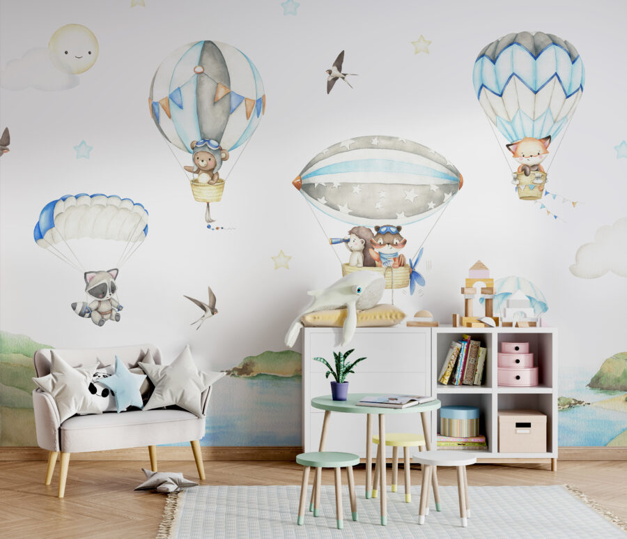 Pourquoi se contenter de murs sobres quand vous pouvez emmener votre enfant à l’aventure avec cette adorable peinture murale ? “L’ours en peluche dans une montgolfière” est trop mignon pour qu’on y résiste. Imaginez un adorable ours en peluche, équipé de lunettes d’aviateur, flottant doucement dans le ciel. Le charme de cette scène de rêve est parfait pour susciter des histoires sans fin et apaiser les rêves nocturnes. Parfaite pour les chambres d’enfants, elle ajoute une touche ludique, sûre et douce pour les yeux. Sérieusement, qui n’aimerait pas se réveiller devant cette scène chaque matin ? On a l’impression d’entrer dans un livre d’images où chaque jour est une nouvelle aventure dans le ciel. Les pastels doux et les personnages fantaisistes font en sorte qu’il n’attire pas seulement le regard, mais aussi l’humeur. La chambre de votre enfant se transforme instantanément en un havre de paix et de magie où les montgolfières et les rêves de haut vol prennent vie.