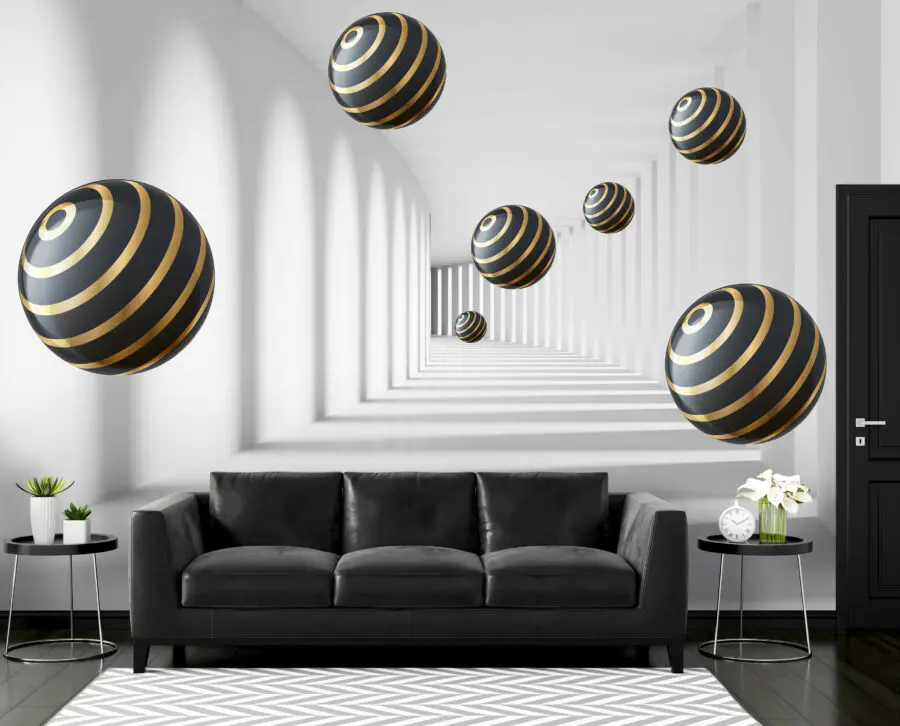 Imaginez que vous entrez dans une pièce et que vous avez l’impression d’entrer directement dans une autre dimension. C’est exactement ce que fait le “Papier peint Striped Spheres Hover in White Corridor”. Ce motif moderne, presque hypnotique, vous donne l’impression d’être dans un tunnel futuriste. Les sphères, avec leurs rayures élégantes, semblent flotter sans effort, créant un sentiment de profondeur qui peut réellement donner l’impression que votre espace est plus grand. C’est un peu comme si vous aviez votre propre décor de film de science-fiction sur votre mur !
