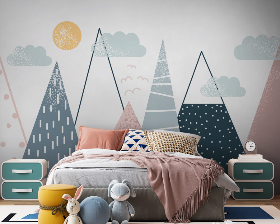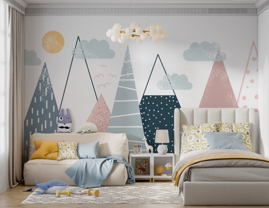 Faites entrer le grand air à l’intérieur avec cette ravissante peinture murale représentant des montagnes géométriques sous un ciel ensoleillé. C’est une sorte de mini-vacances pour les murs, parfaite pour stimuler l’imagination dans les chambres d’enfants ou les aires de jeux. Ces couleurs douces associées à des motifs fantaisistes lui confèrent un charme indéniable. Imaginez un enfant qui s’endort en rêvant d’aventures en montagne ou de nuages qui murmurent des histoires – c’est doux, non ? De plus, c’est un moyen rapide d’embellir n’importe quel espace sans trop d’efforts. Les murs pourraient même rougir un peu ! Sérieusement, cette peinture murale a de la magie à revendre.