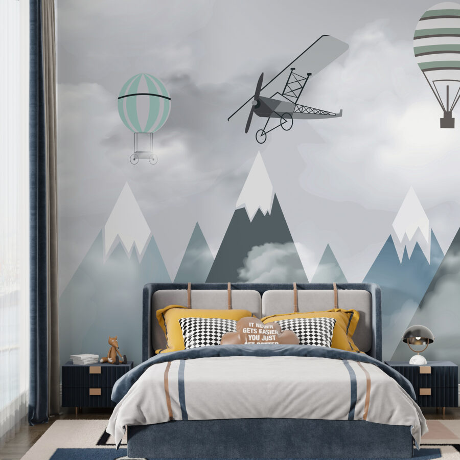 Imaginez la chambre de votre enfant se transformer en une aventure aérienne de rêve avec ce ravissant “Muraux avions et montgolfières sur montagnes”. C’est comme si vous entriez dans un livre de contes où des avions et des montgolfières fantasques dérivent paresseusement au-dessus de pics montagneux sereins. Parfait pour votre petit aviateur ou explorateur en herbe, ce tableau mural suscite un sentiment d’émerveillement et de possibilités infinies.