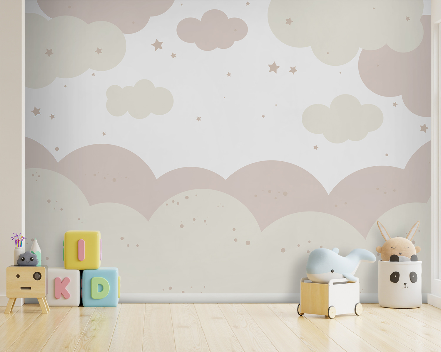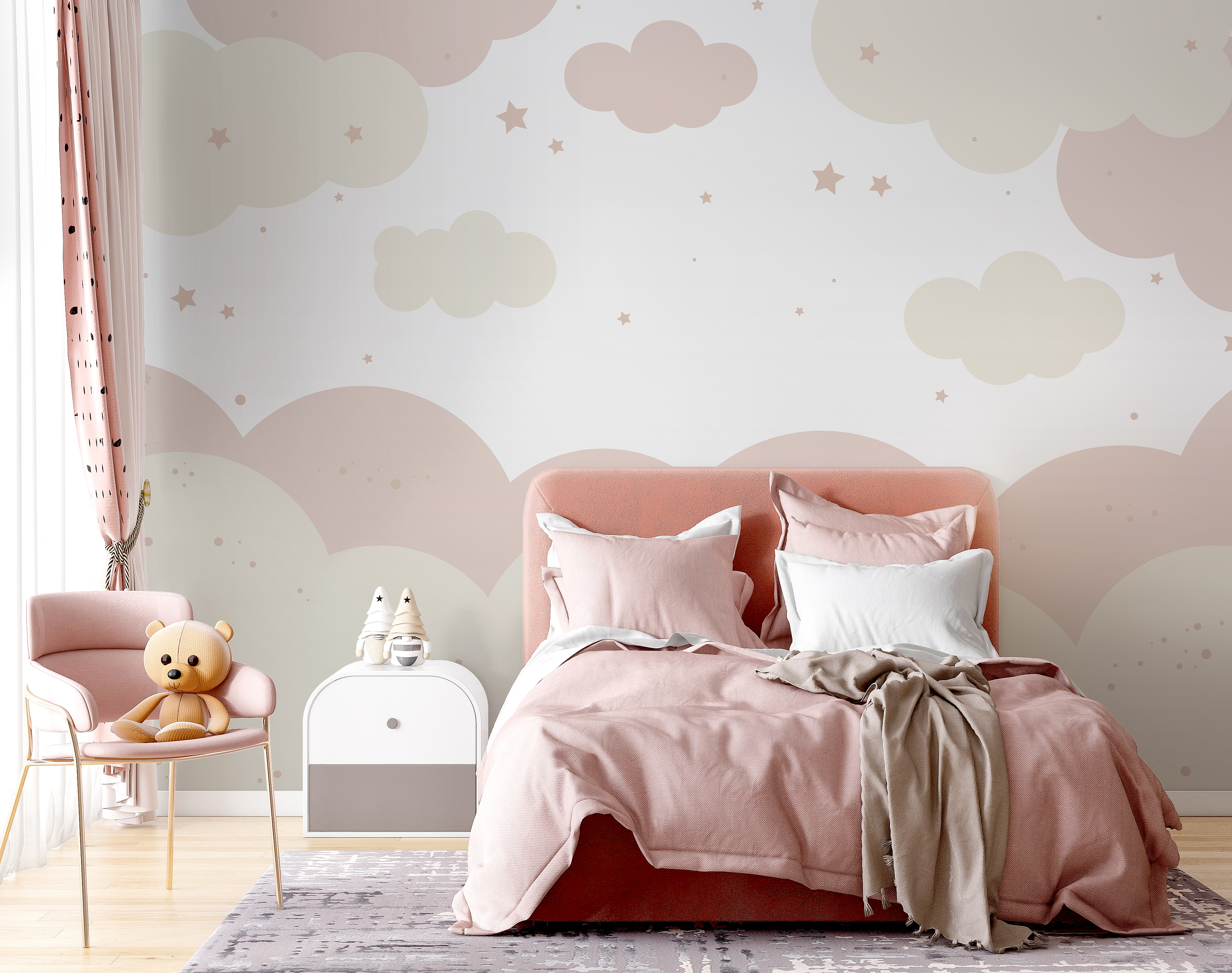 Imaginez que vous entrez dans une pièce et que vous ressentez la sérénité de flotter sur des nuages. C’est ce que fait cette peinture murale de nuages blancs et roses. Il est parfait pour une chambre d’enfant, qu’il s’agisse d’une chambre de rêve ou d’un havre de paix pour votre petite princesse. Les tons pastel sont apaisants, parfaits pour les histoires tranquilles à l’heure du coucher ou les rêveries imaginatives.