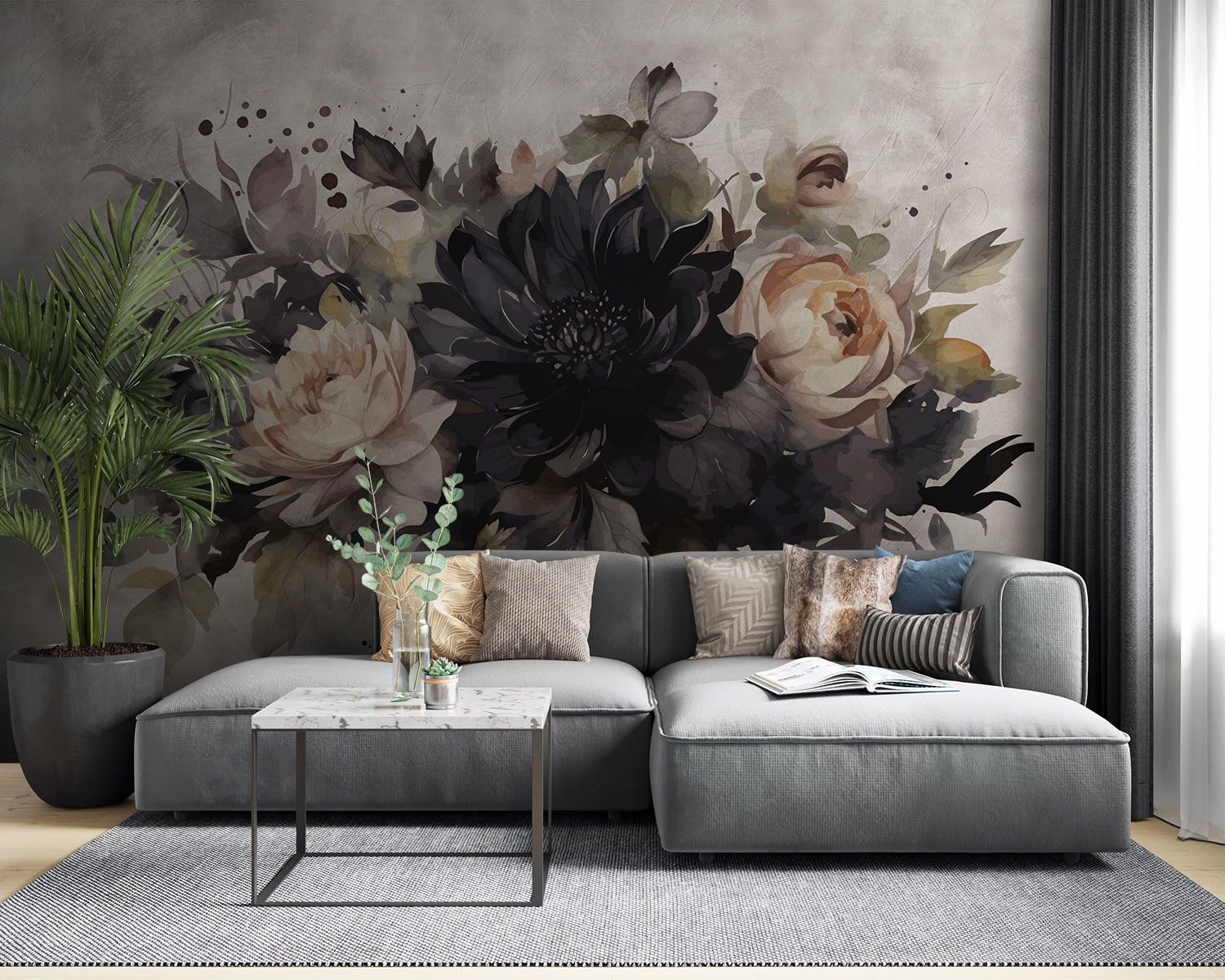 Papier peint Peinture florale vintage dans des tons sourds. (UGS: u95409)