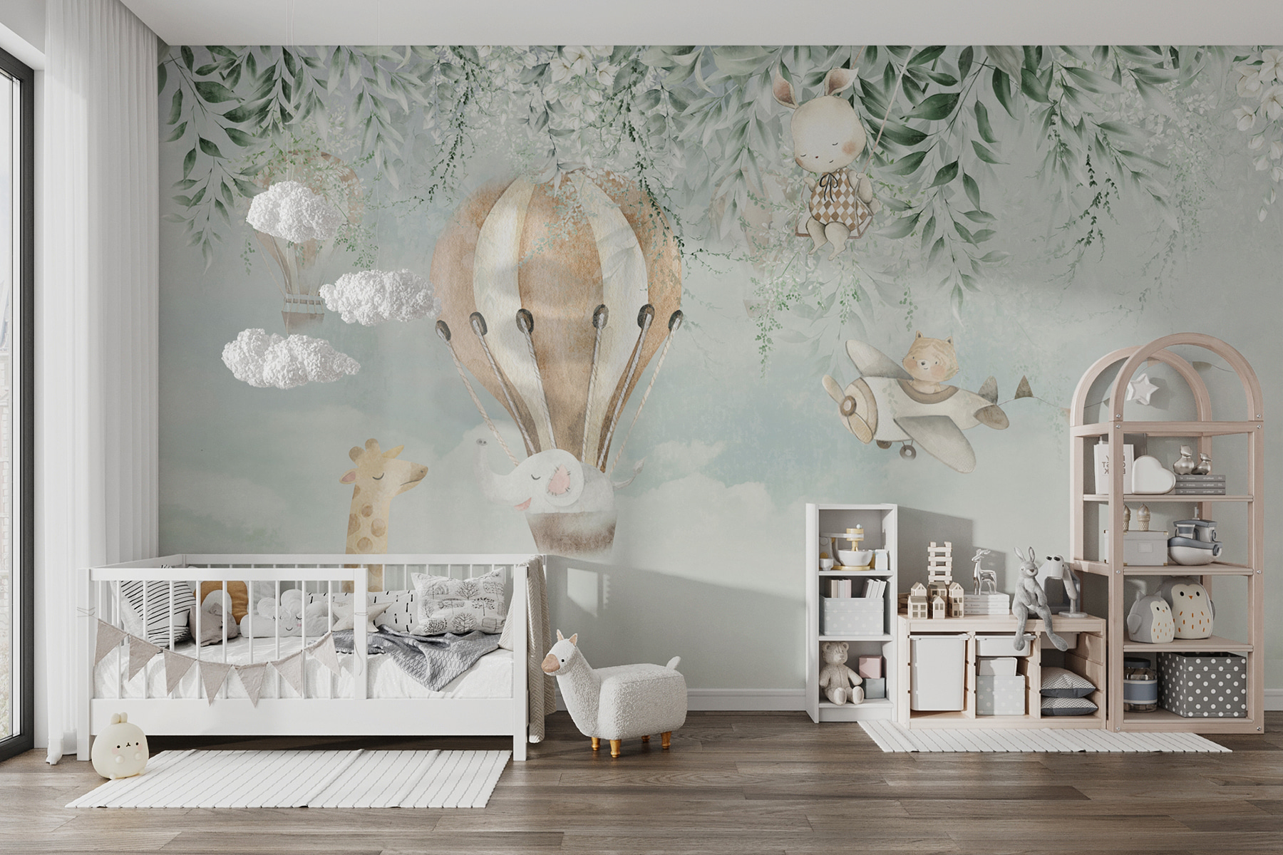 Vous avez déjà rêvé d’apporter une scène fantaisiste et rêveuse dans la chambre de votre enfant ? Ce “Tableau mural d’un lapin sur une balançoire” est sûr de faire l’affaire. Imaginez les yeux de votre enfant s’illuminer en apercevant l’adorable lapin se balançant doucement au milieu de verts tendres et de petits détails charmants. Il y a même une montgolfière et d’autres personnages charmants !