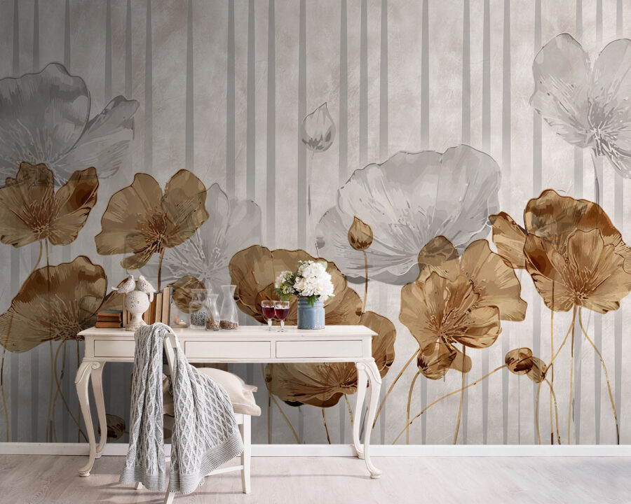 Transformez un mur ordinaire en un jardin fleuri grâce à cette peinture murale amusante et chic qui met en scène des fleurs fantaisistes sur un fond rayé subtil. Imaginez que vous entrez dans une pièce fraîche et accueillante, où chaque coup d’œil au mur apporte un soupçon de charme naturel à l’intérieur. Les tons chauds créent une ambiance chaleureuse, parfaite pour les dimanches après-midi paresseux ou les réunions animées. C’est comme un câlin chaleureux pour votre espace. De plus, c’est un excellent moyen d’engager la conversation – les amis demanderont certainement d’où il vient. Les compliments ne manqueront pas !