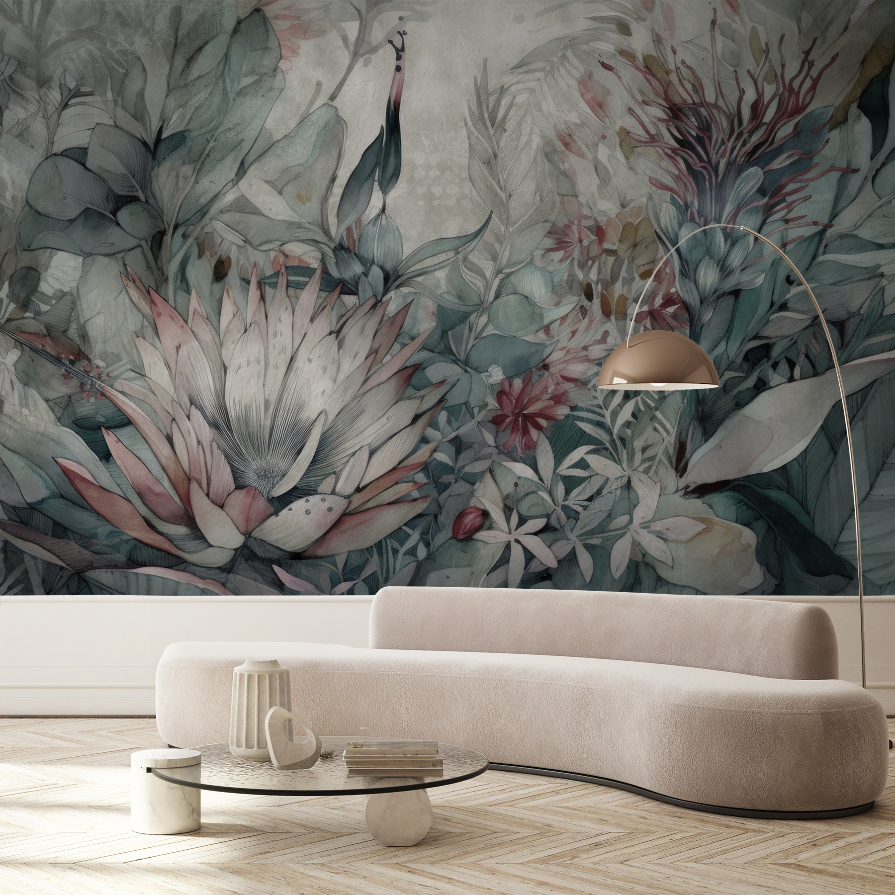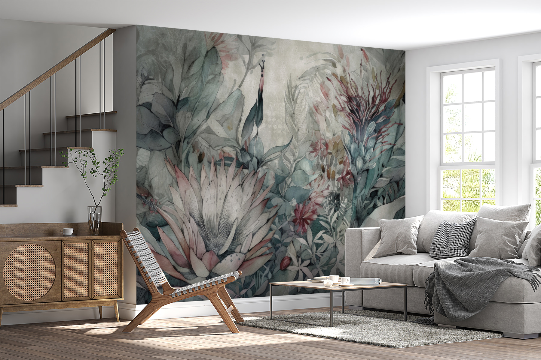 Entrez dans un rêve enchanteur avec la peinture murale “Illustration florale délicate”. Parfaite pour tous ceux qui aiment une touche de fantaisie dans leur décor, cette peinture murale vous transporte directement dans un jardin de jungle apaisant. Imaginez des oiseaux exotiques et des fleurs luxuriantes, le tout dans des tons doux et apaisants. C’est comme si vous aviez un coin tropical secret, où tout est doux et paisible.